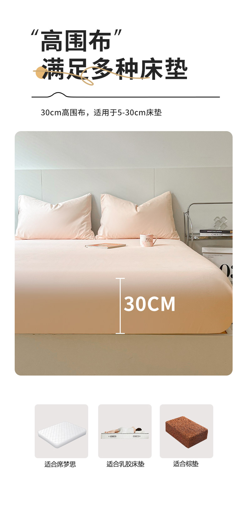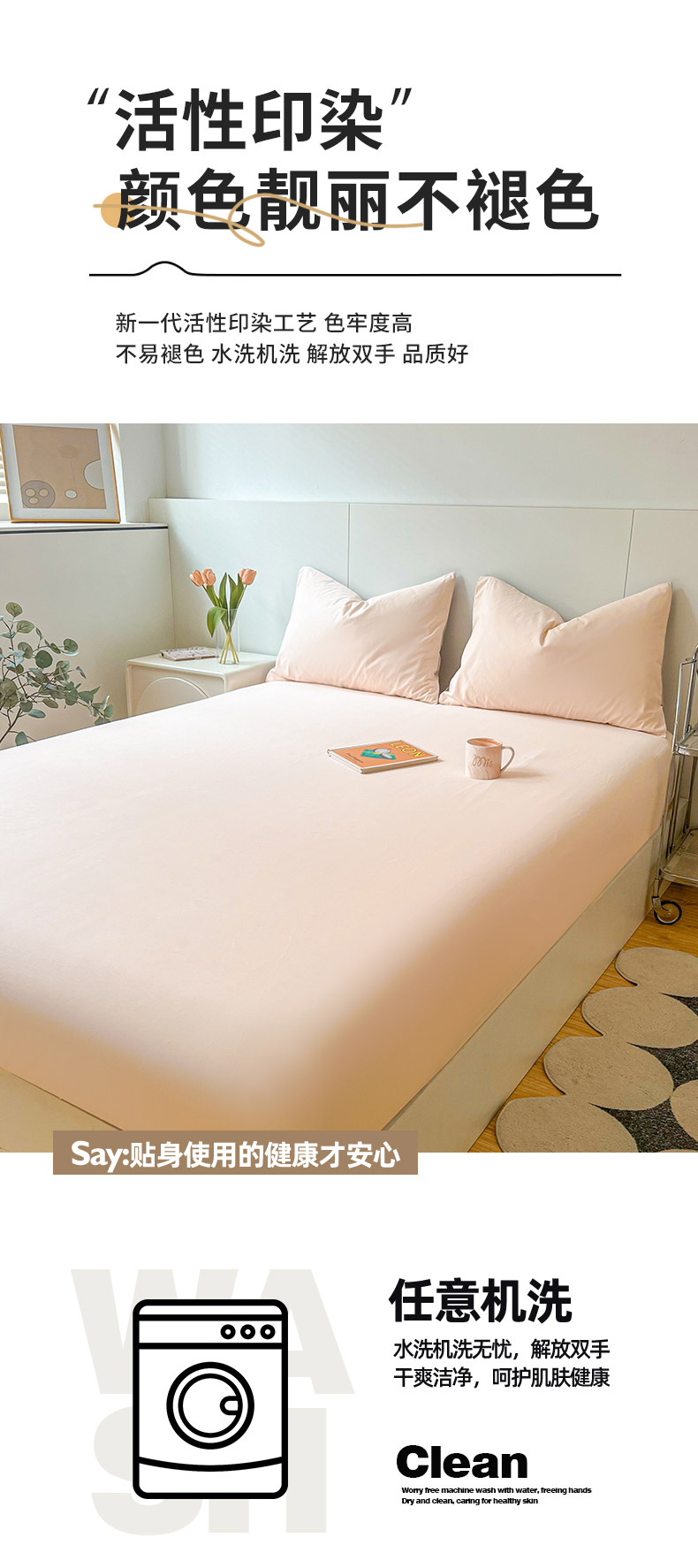 商品名称:米粒家纺 2024新款纯色磨毛床笠 粉雨