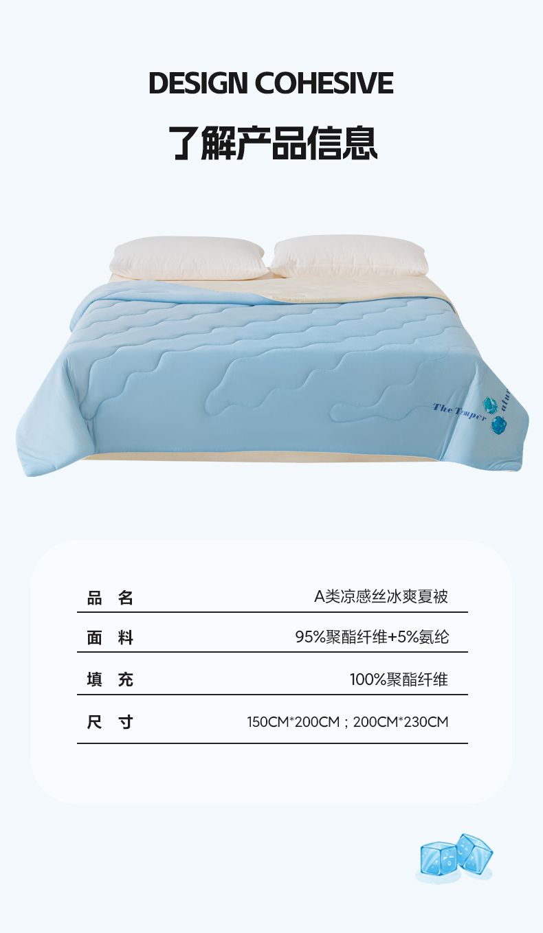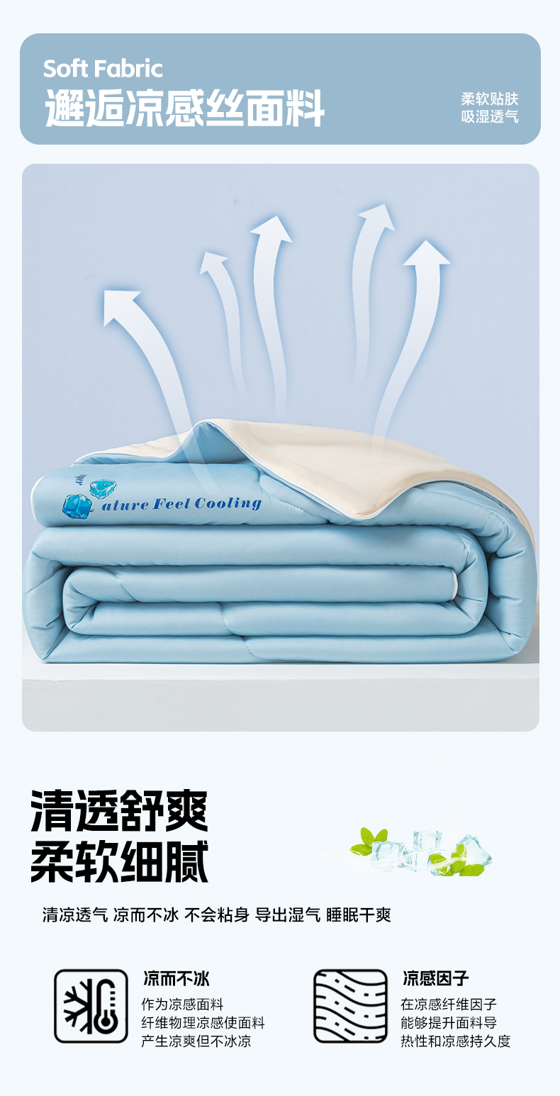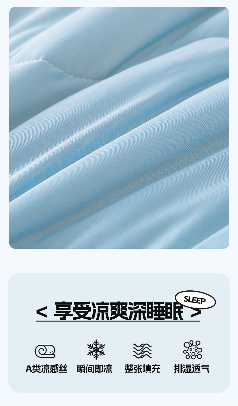 商品名称:荔禾家居 2024新款A类氨纶凉感丝冰感夏被 冰感蓝