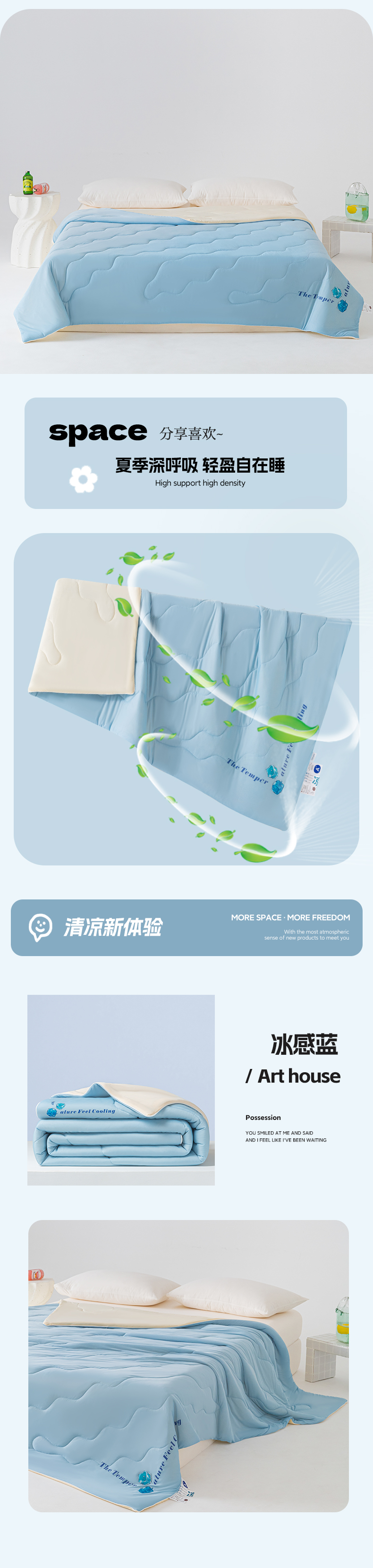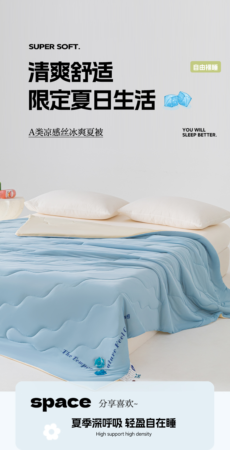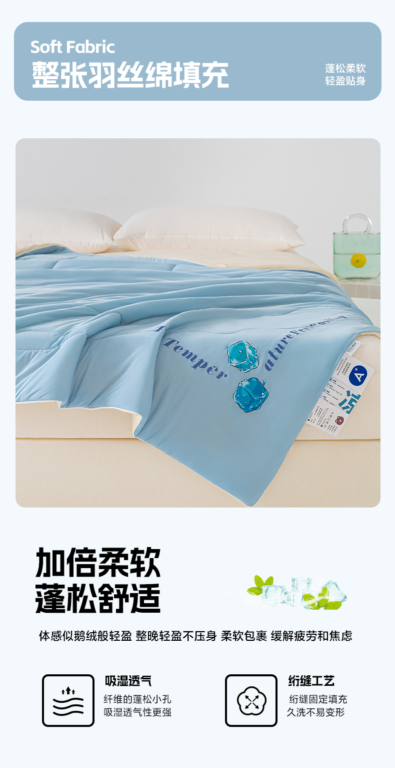 商品名称:荔禾家居 2024新款A类氨纶凉感丝冰感夏被 冰感蓝