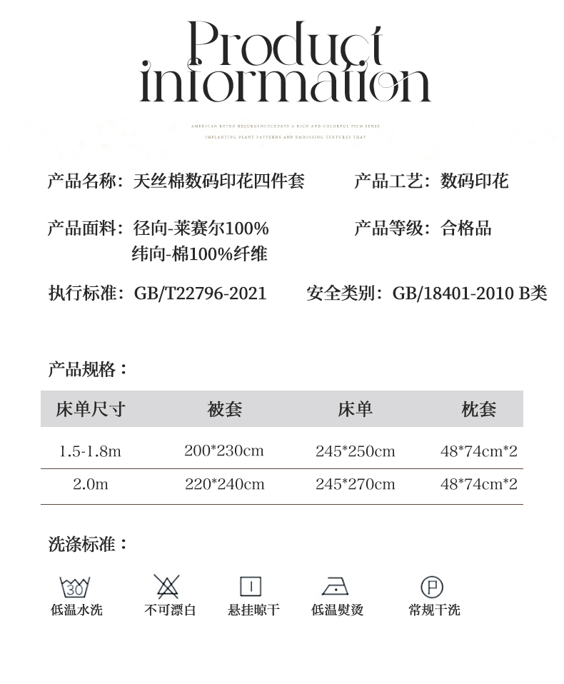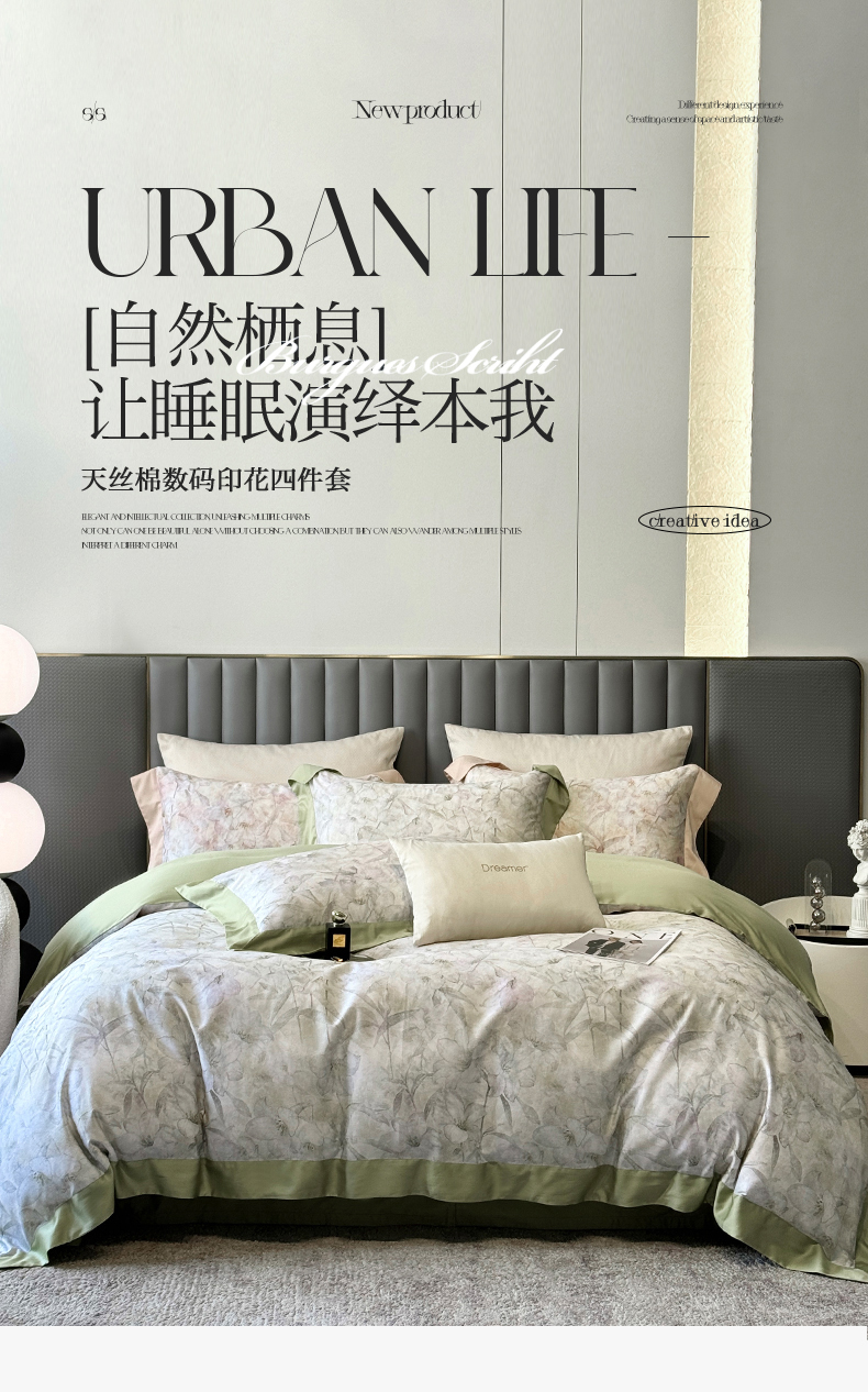 商品名称:瑞米家居 2024新款天丝棉数码印花四件套 茹薇