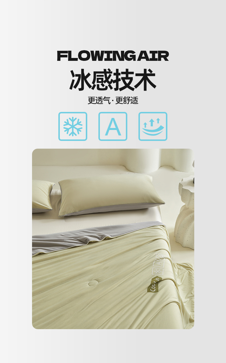 • 91家纺网 家纺一手货源 找家纺 桃子 2024新款A类高品质冰冰凉雪花冰感凉皮双面凉感夏被 冰感凉皮-青石绿灰(加倍透气)
