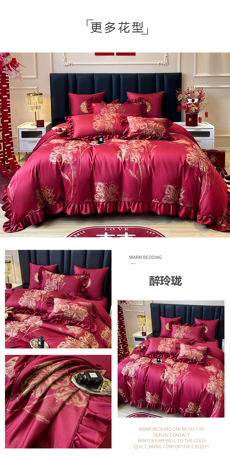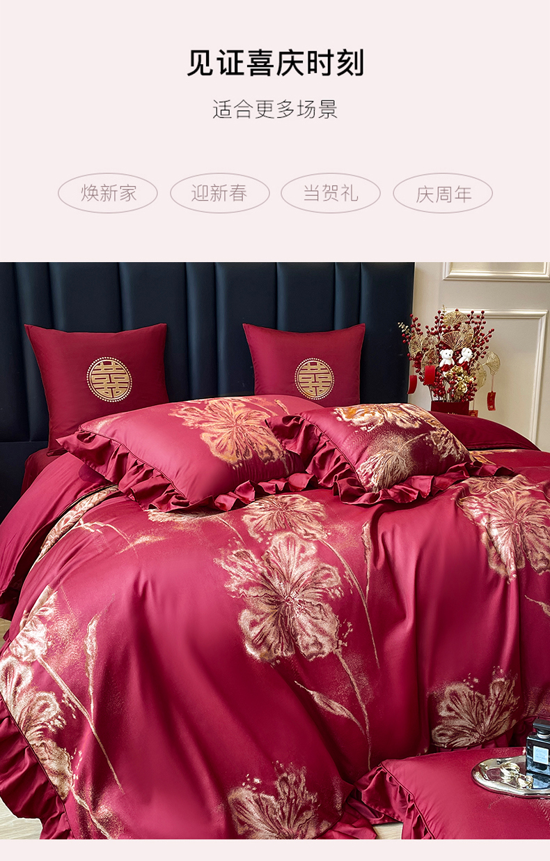(总)甜咪咪婚庆 2025婚庆新品莱赛尔纤维天丝大提花全棉四件套多件套结婚套件,爱恋,璀璨,繁华,国色,红妆,锦绣,玫瑰,添香,相爱,相守,绚丽,绽放,醉玲珑,相依