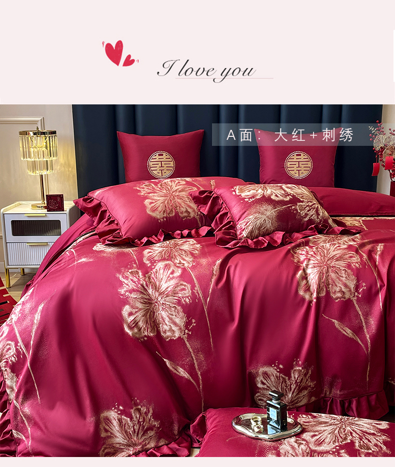 甜咪咪婚庆 2024新品长绒棉全棉婚庆结婚四件套多件套小红书推荐 醉玲珑