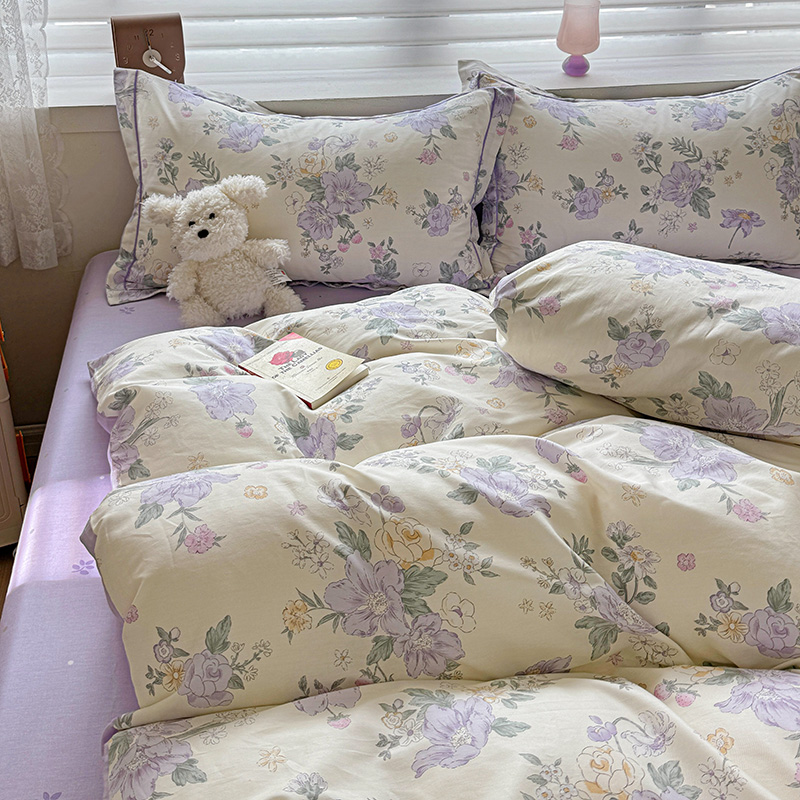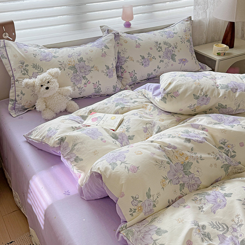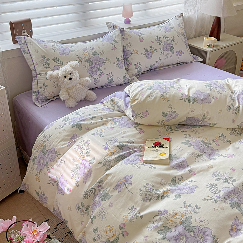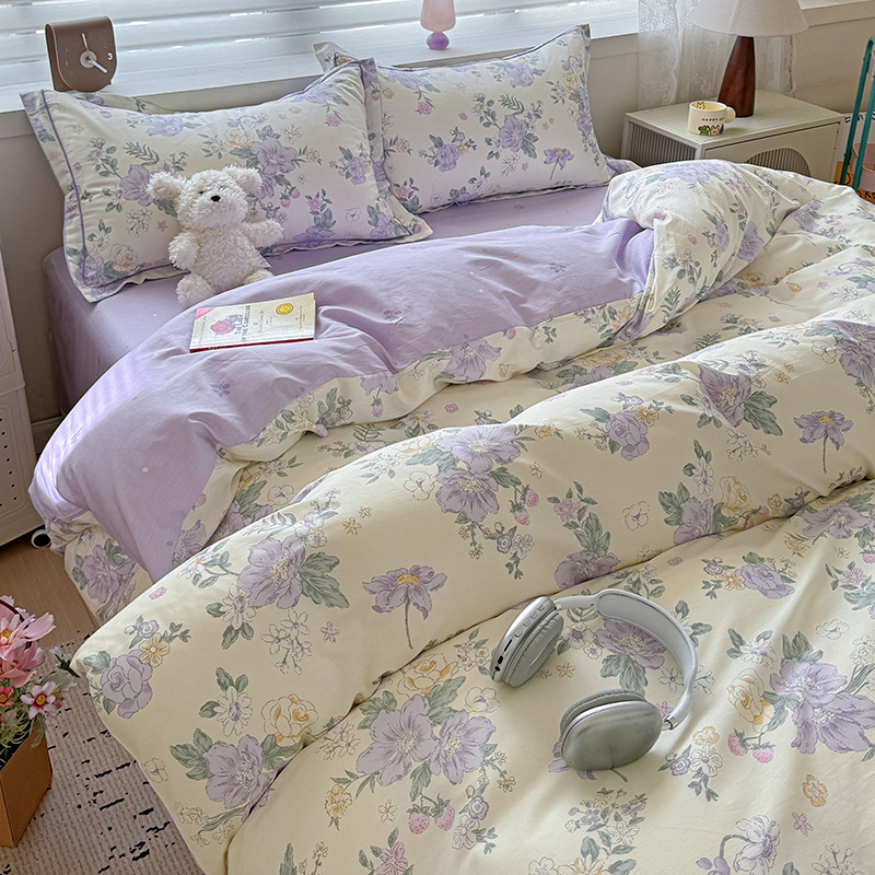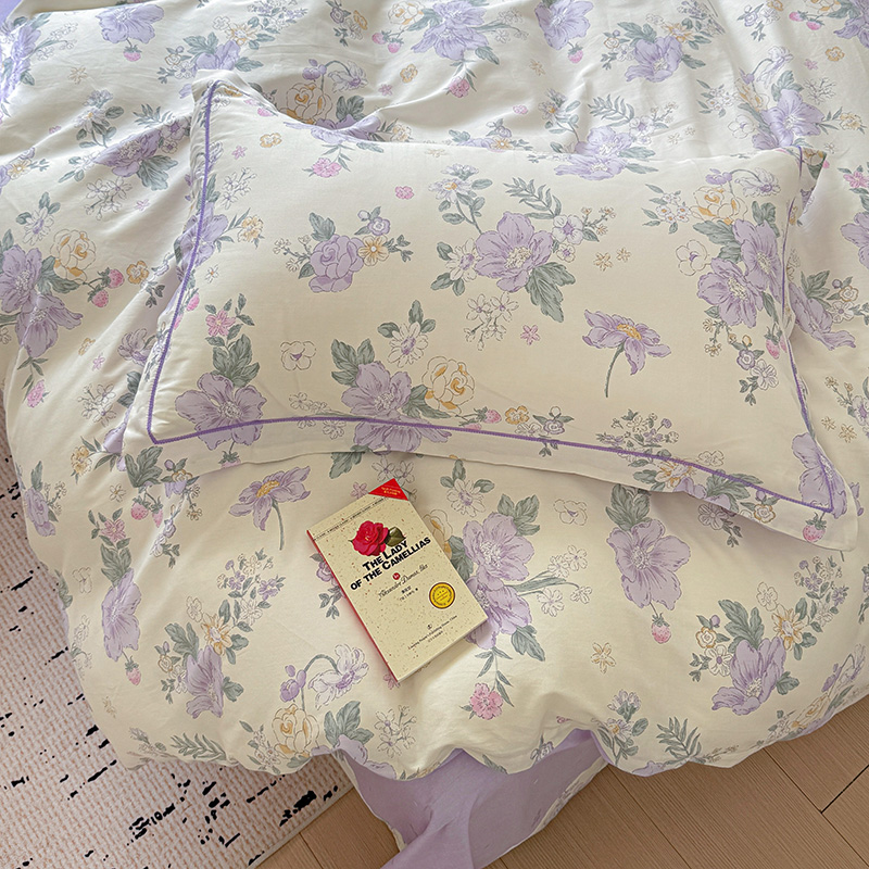 乐童 2024新款直播爆款13070纯棉印花吊边款一字绣四件套第八波繁花春屿