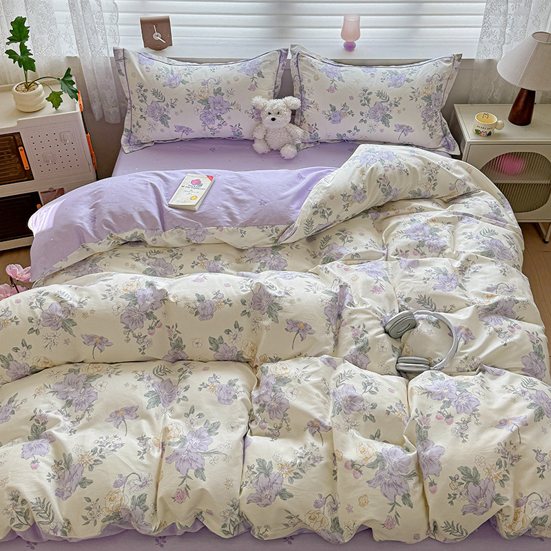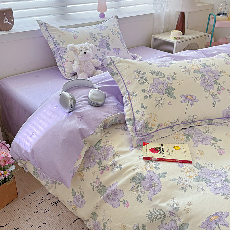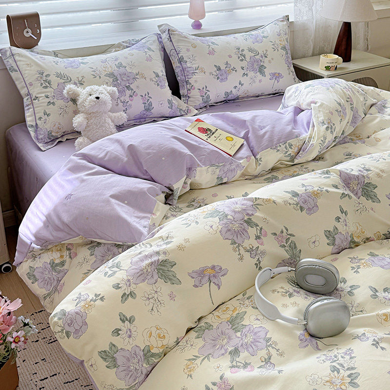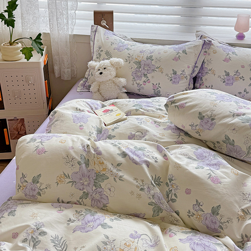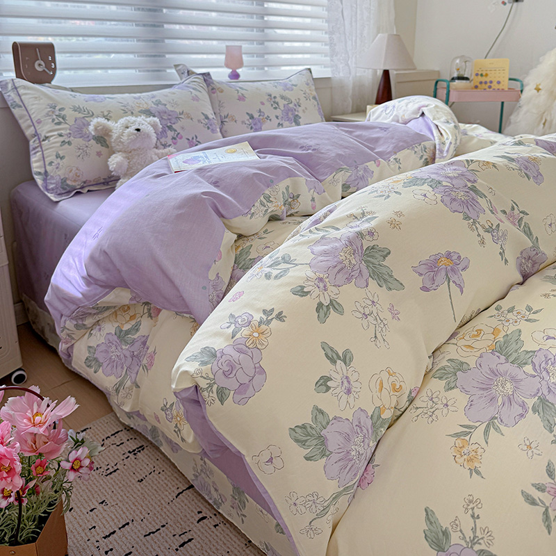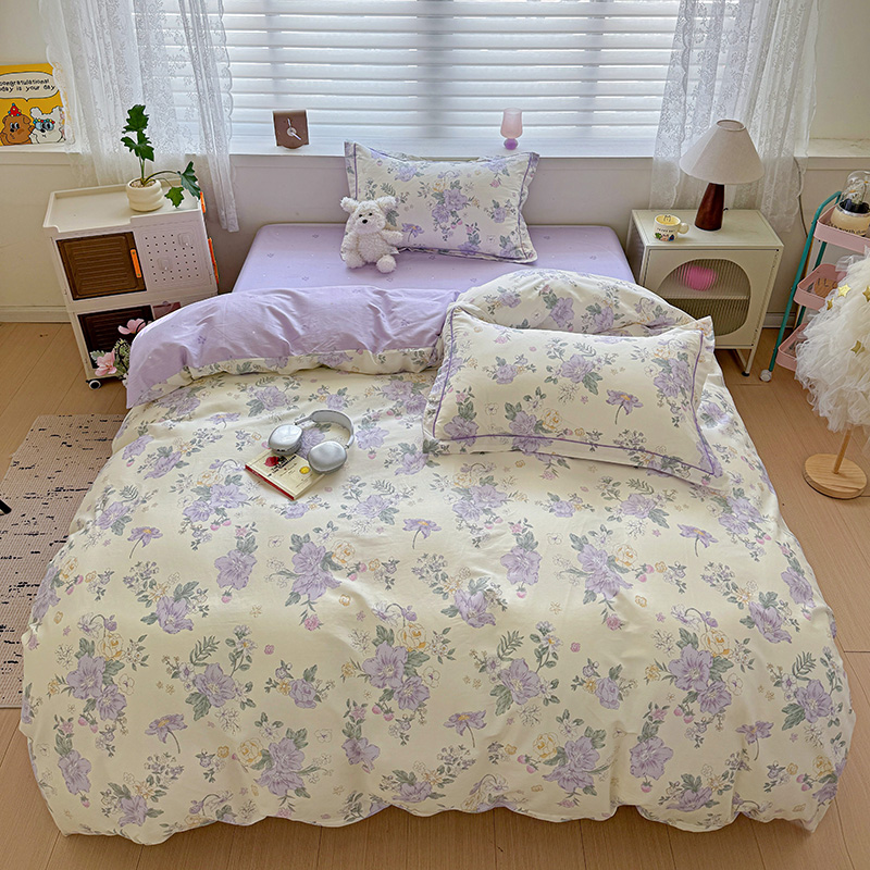 乐童 2024新款直播爆款13070纯棉印花吊边款一字绣四件套第八波繁花春屿