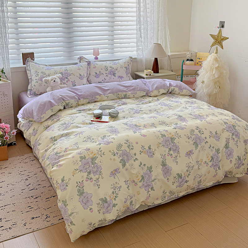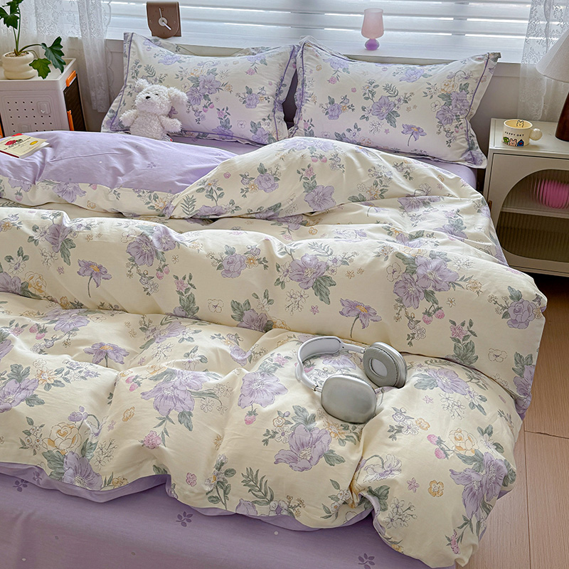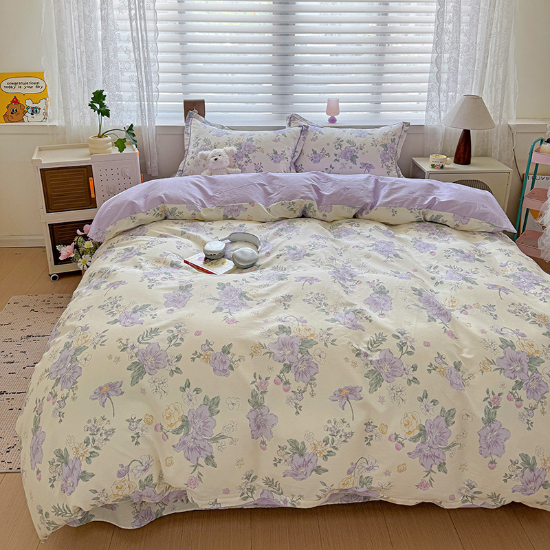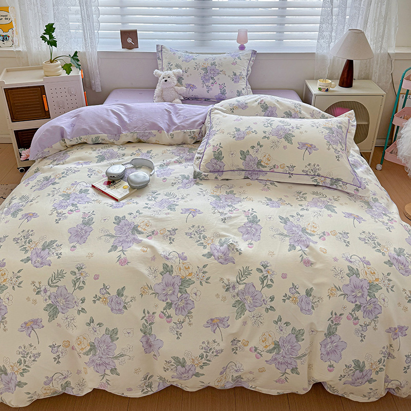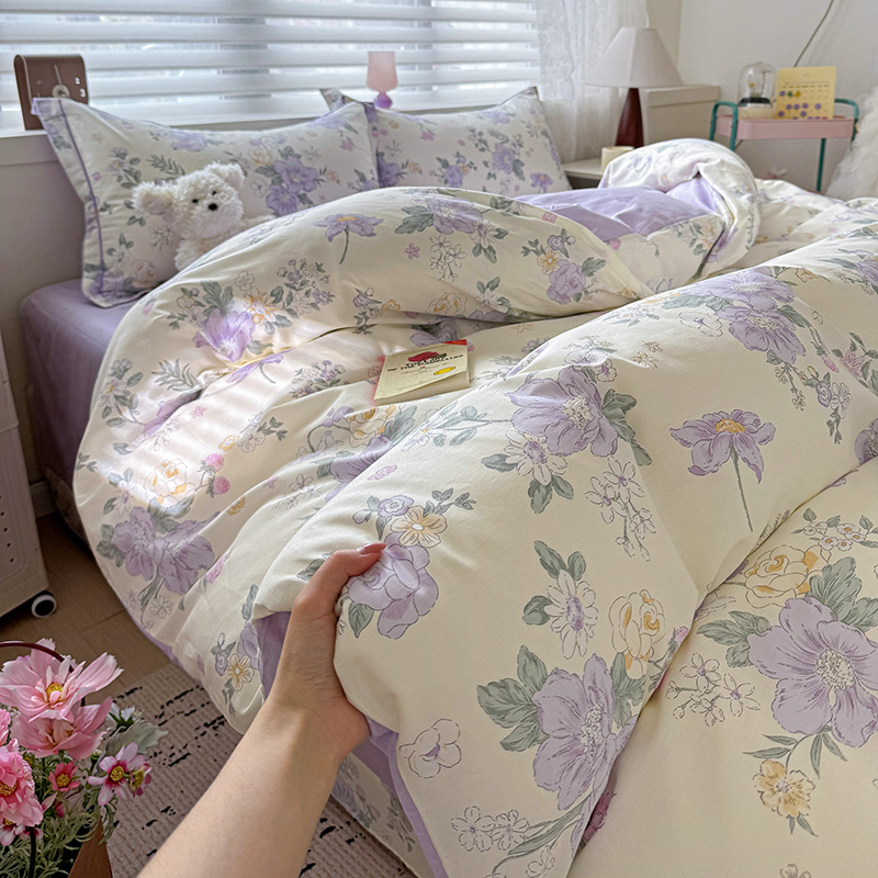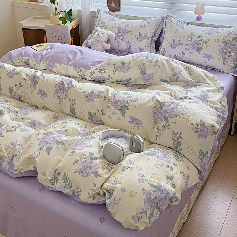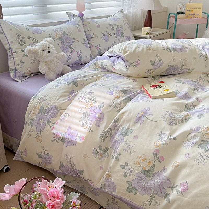 商品名称:乐童 2024新款直播爆款13070纯棉印花吊边款一字绣四件套第八波繁花春屿