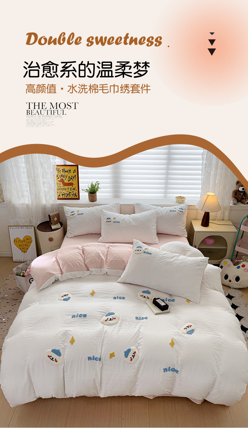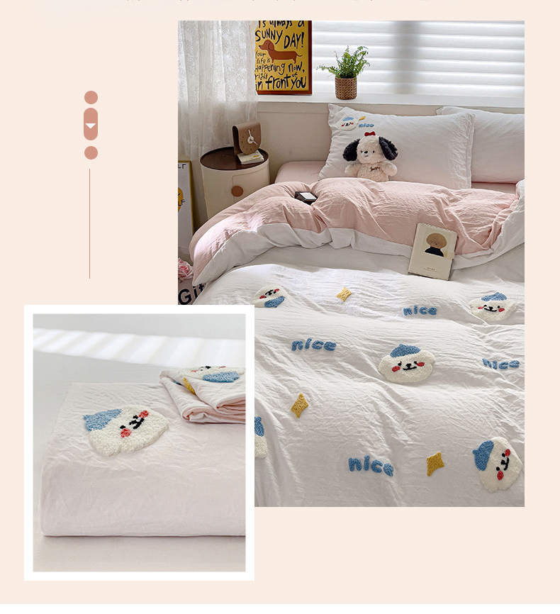 (总)韩巢家纺 2025新款水洗棉大花边被套四件套直播热销款学生宿舍被罩床单三件套(提供卖家秀),春日与玫瑰【大花边款】,繁花似梦【大花边款】,花时宇间【大花边款】,灰蒙小狗【大花边款】,久期诗朵-黄【大花边款】,可可腊肠犬【大花边款】,奶油樱桃【大花边款】,软糖猫【大花边款】,甜樱恋曲【大花边款】,温暖粉心【大花边款】,小花野-紫【大花边款】,小熊冰淇淋【大花边款】,星梦蝶结【大花边款】,幸运可爱兔【大花边款】,摘樱桃的小熊【大花边款】