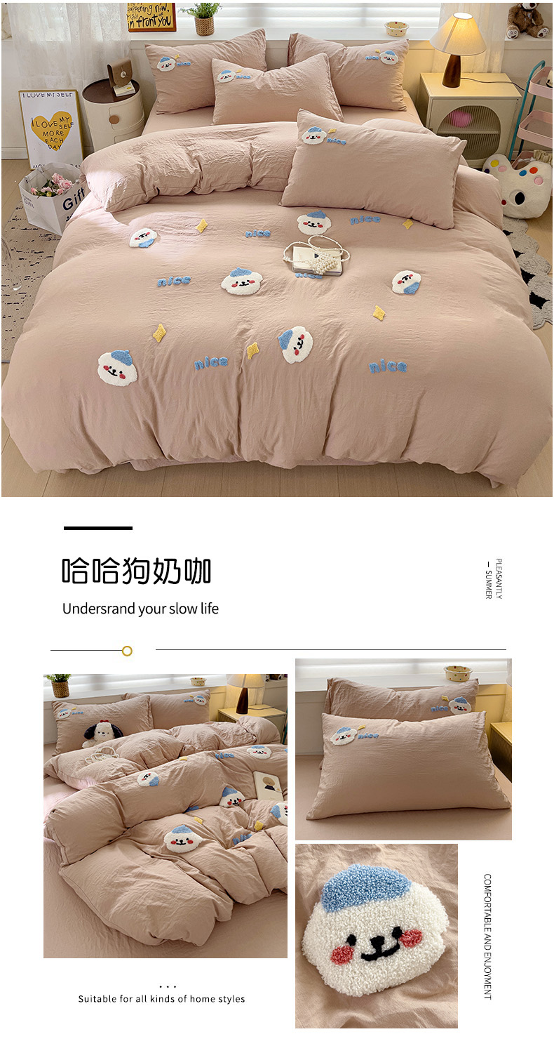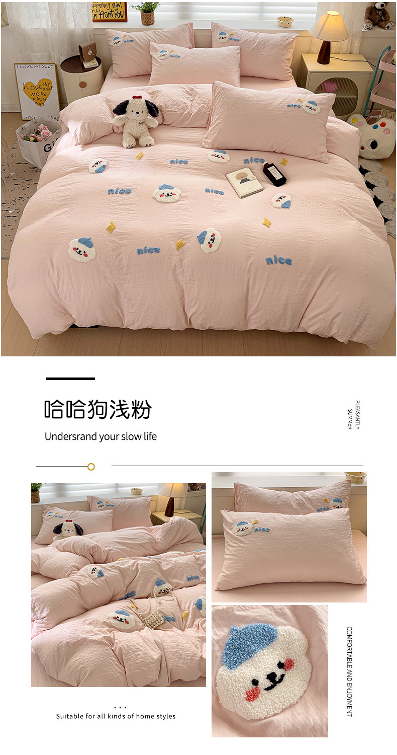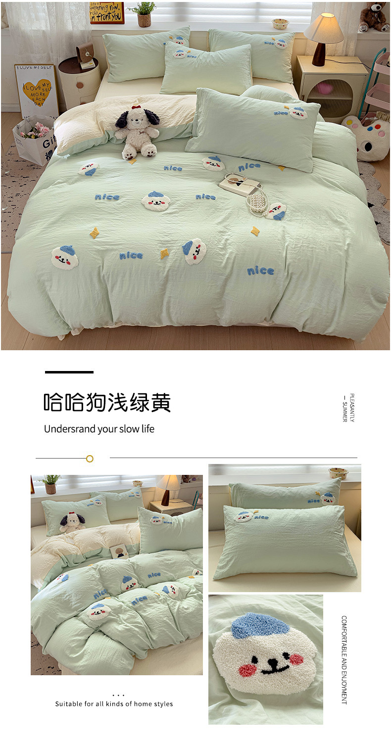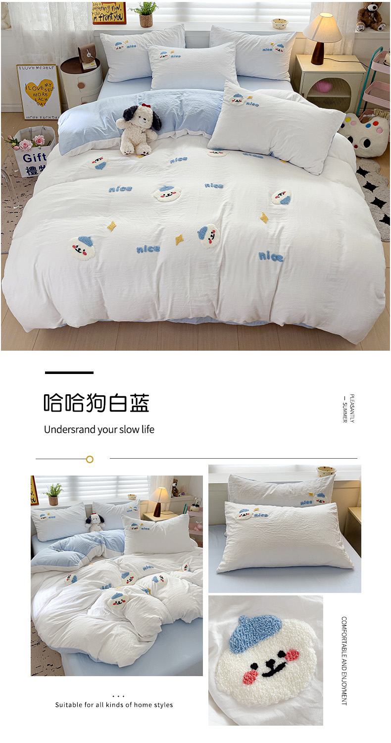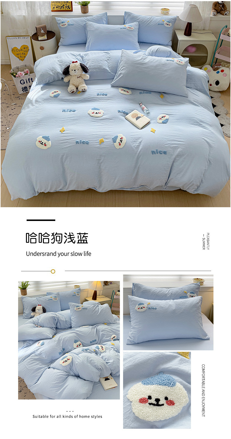 商品名称:(总)韩巢家纺 2024爆款四季通用超柔水洗棉毛巾绣四件套-哈哈狗系列(提供精美卖家秀)