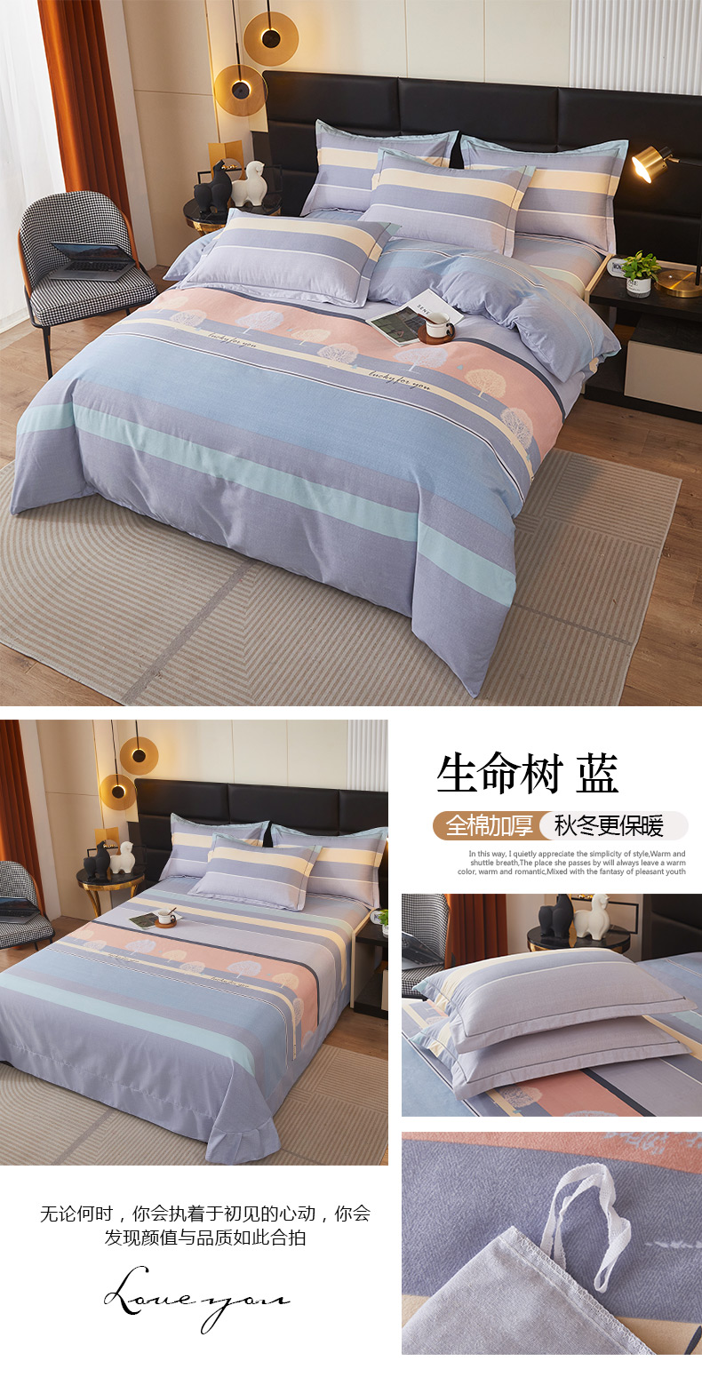 商品名称:雲归梦 2024秋冬新款加厚全棉多规格四件套生命树 蓝