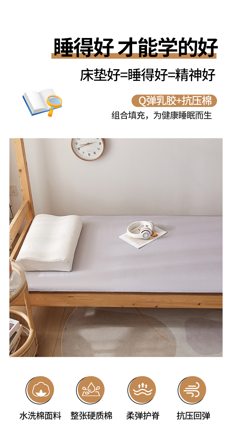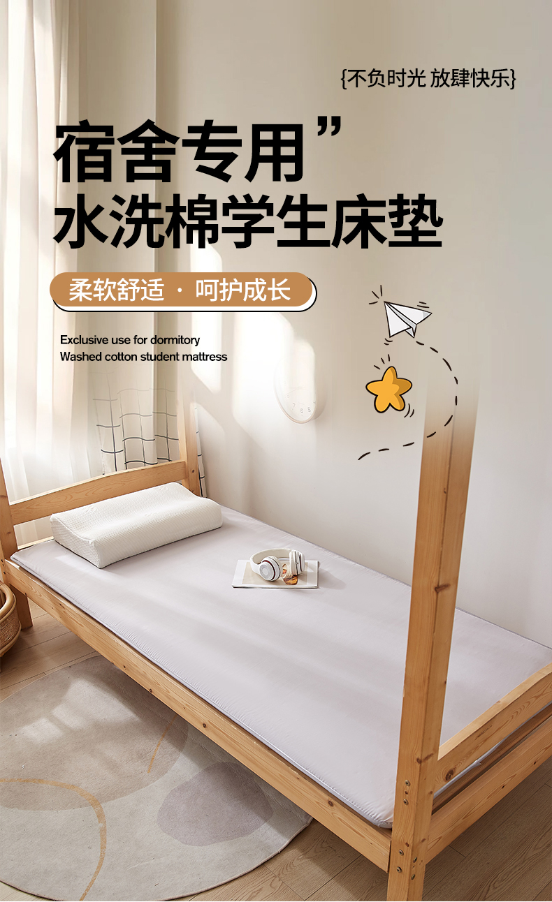 商品名称:招财狼 2024新款水洗棉硬质棉学生床垫 灰色