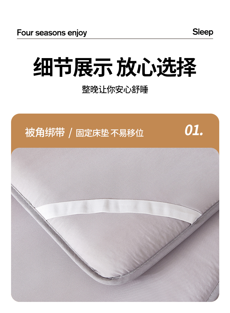 (总)招财狼 2025新款亲肤磨毛床垫,淡雅灰,珍珠白