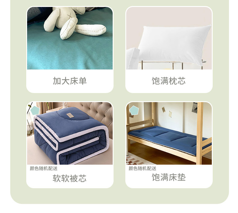 0.9m床垫上下铺六件套3斤被芯 | ¥94.00 |