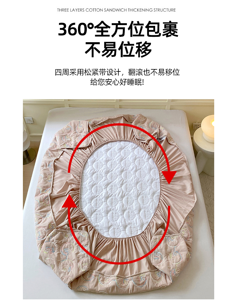 尊康家纺(原磊科) 2024新款亲肤奶昔棉夹棉床裙-风雅 风雅-香槟金,风雅-香槟金