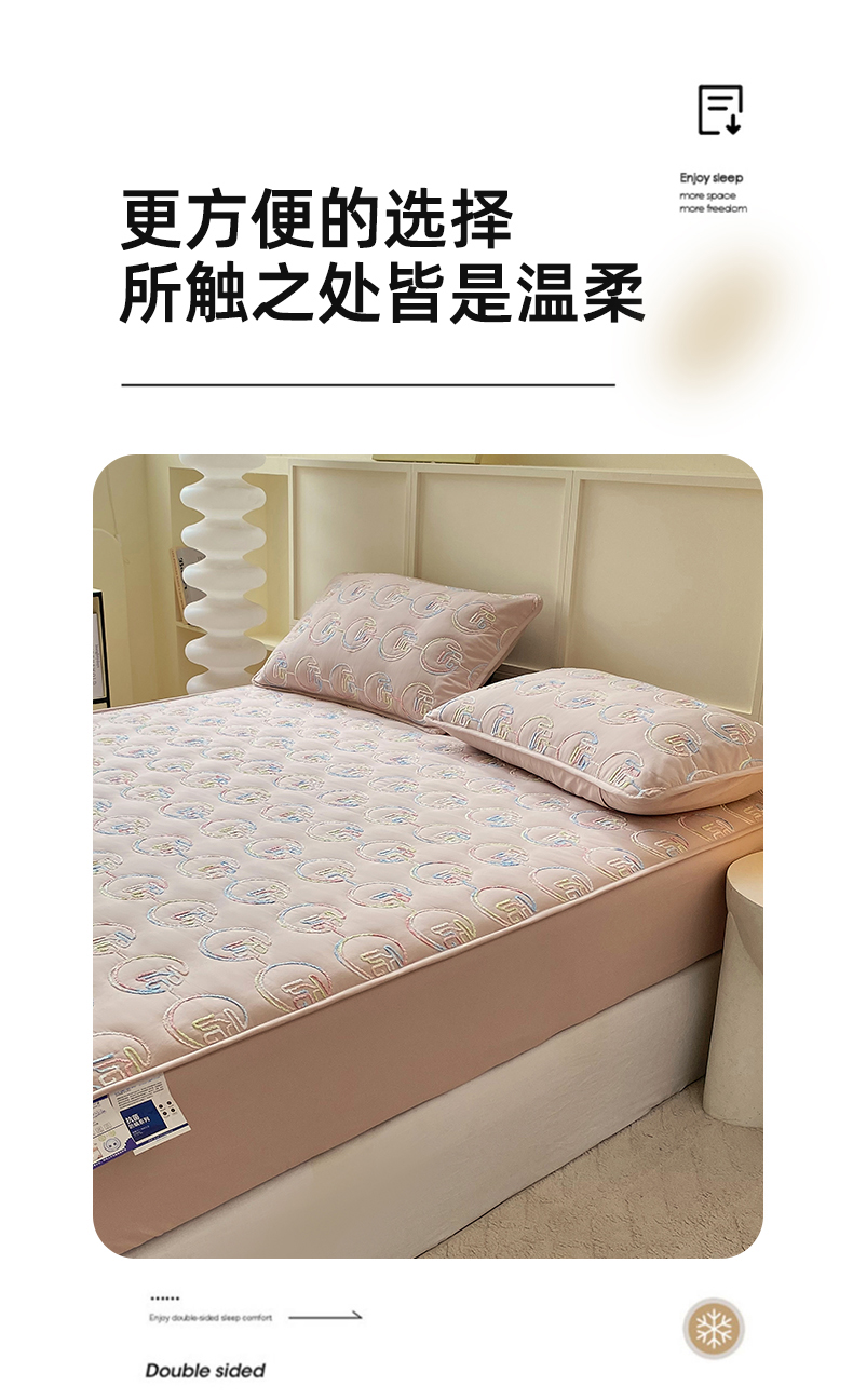 尊康家纺(原磊科) 2024新款亲肤奶昔棉夹棉床裙-风雅 风雅-黛粉,风雅-黛粉