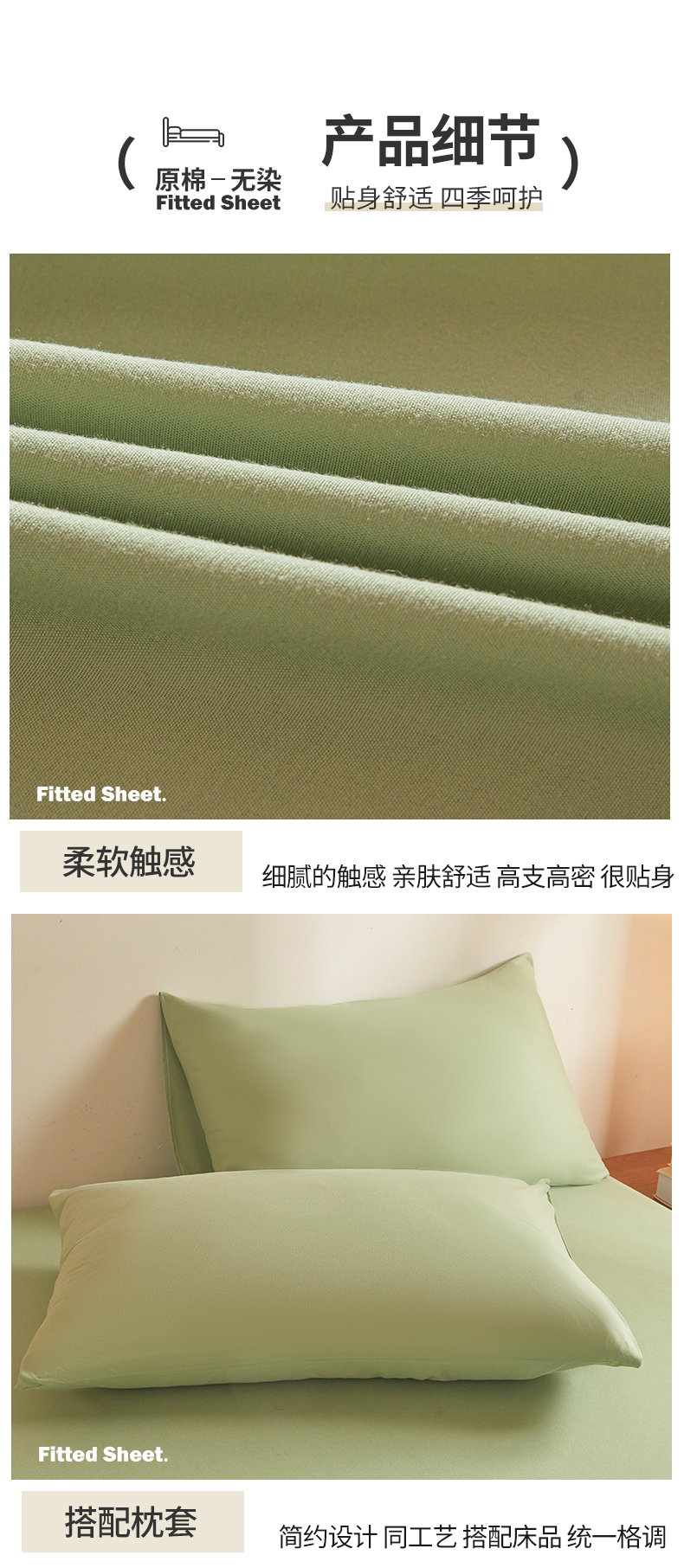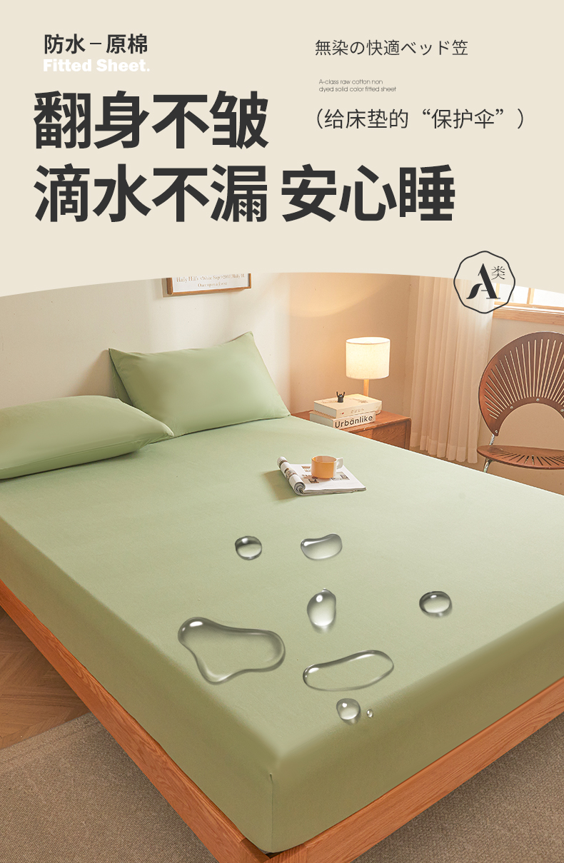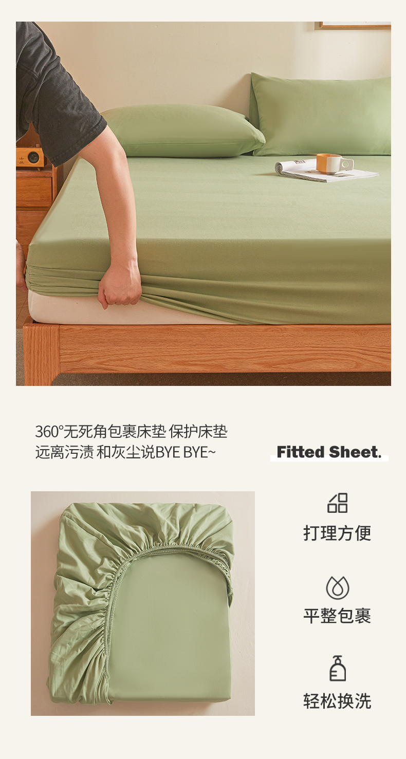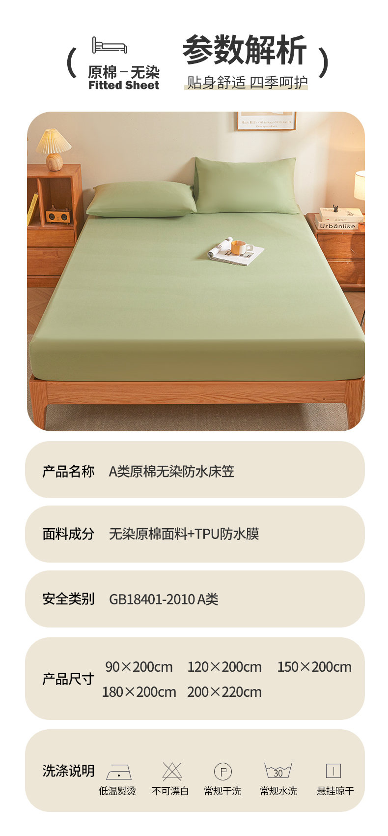 商品名称:伊人坊 2024新款原棉单层纯色床笠防水 豆绿