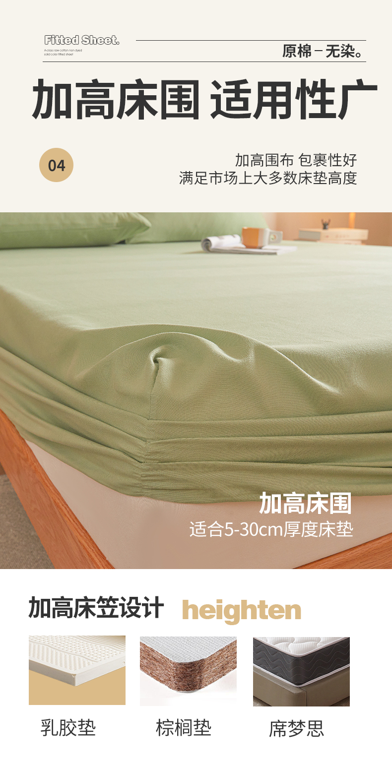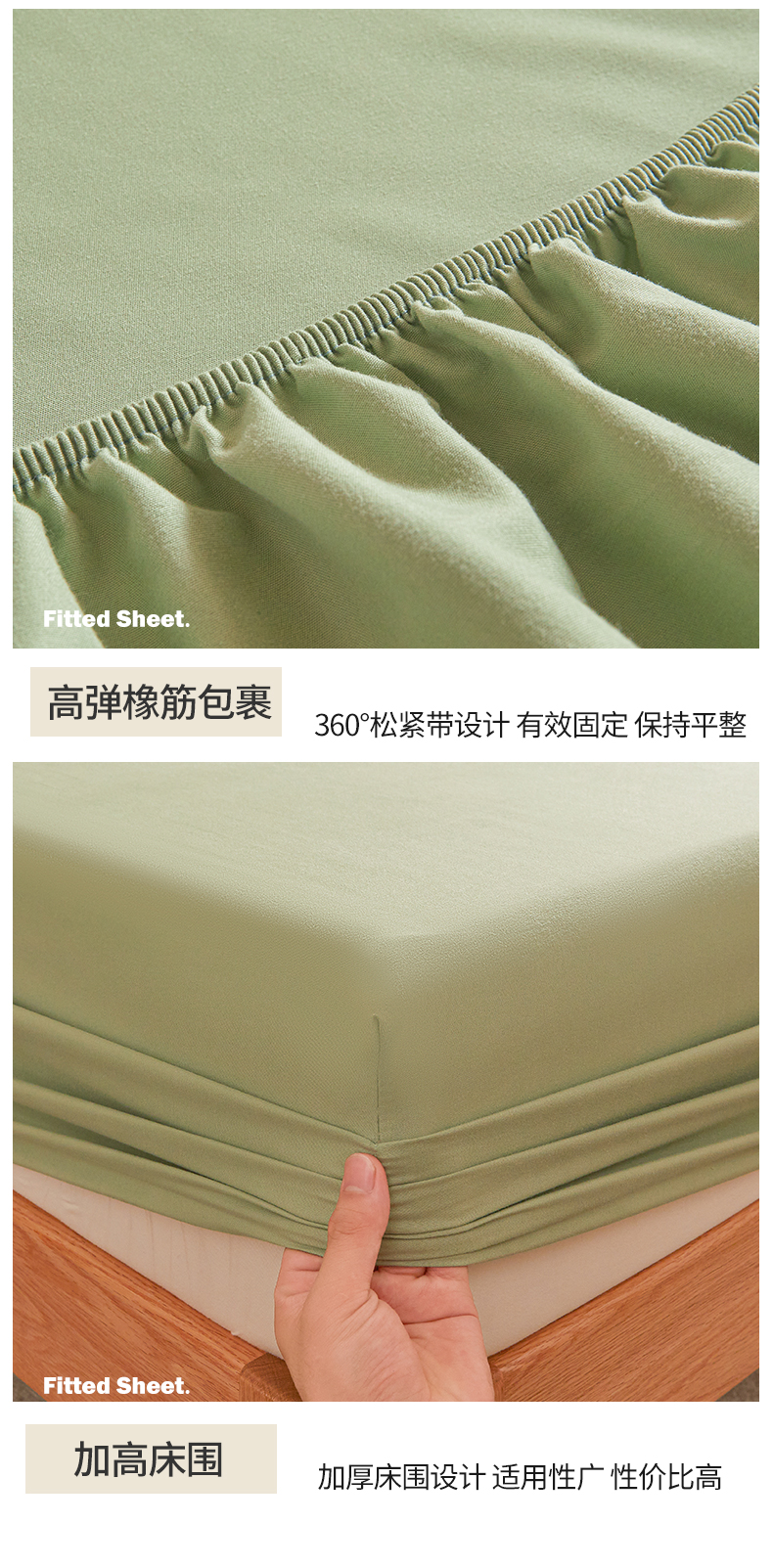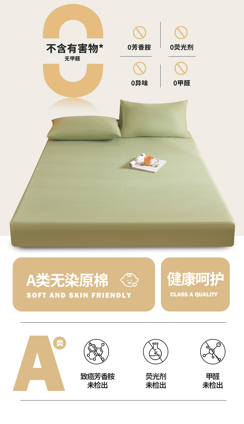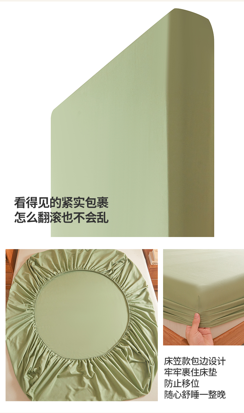 商品名称:伊人坊 2024新款原棉单层纯色床笠防水 豆绿