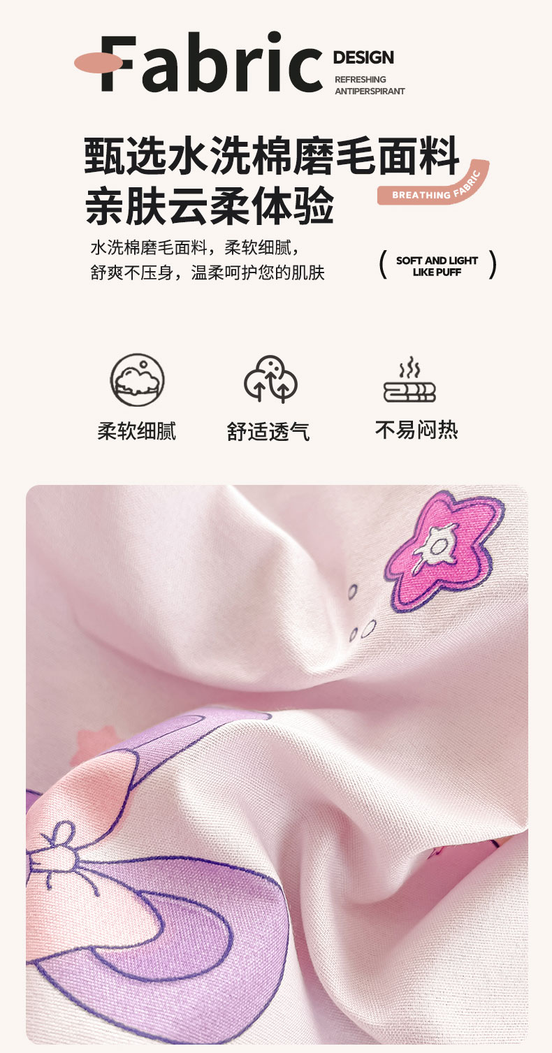 楠沐家纺 2025年新款亲肤水洗棉芦荟棉磨毛单被套(第二批) 紫色浪漫