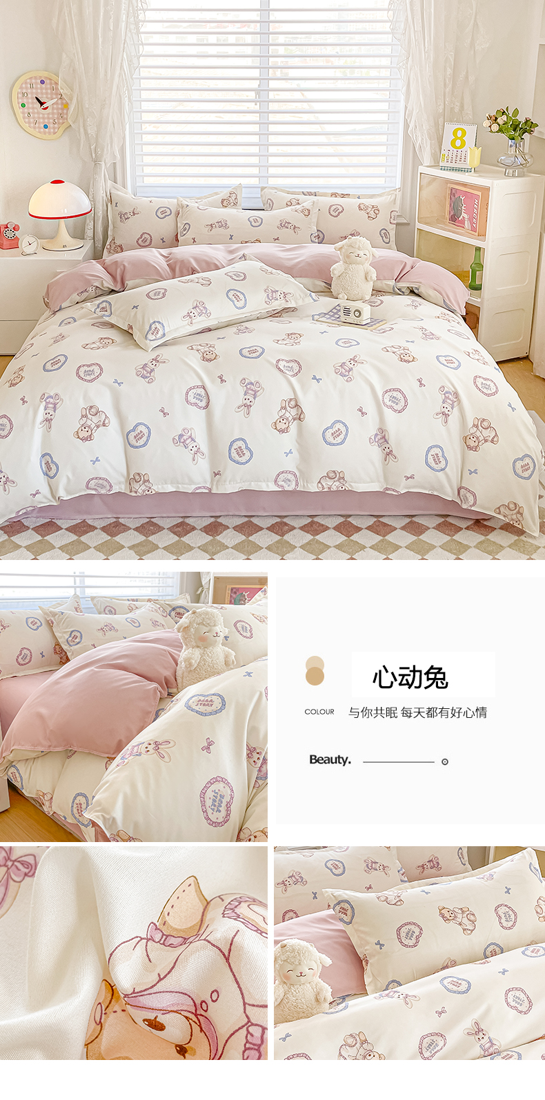 (总)楠沐家纺 2025新款芦荟棉印花学生宿舍上下铺四件套三件套,冰淇淋格,春田花卉,蝶舞仙子,哆咪熊,果绿浅驼,果绿耀夜黑,花丛兔,滑板小熊,猫咪小姐,秘境花园,奶粉色泡泡绿,南得遇见,派对熊,山茶花,水墨花,田园小兔,心动兔,星星兔,幸运心,炫彩蓝格,血牙深灰,紫色浪漫,紫悦