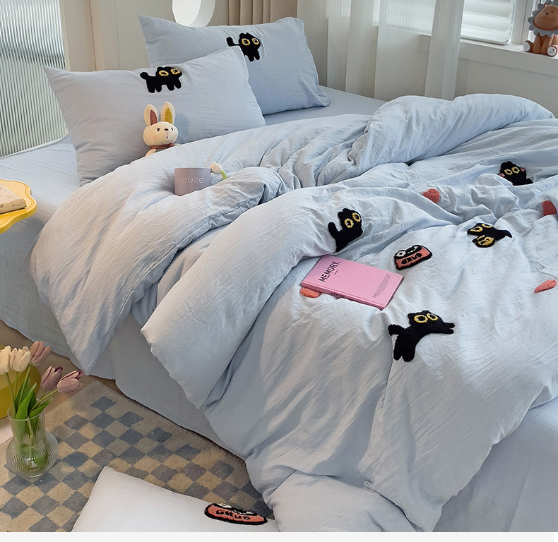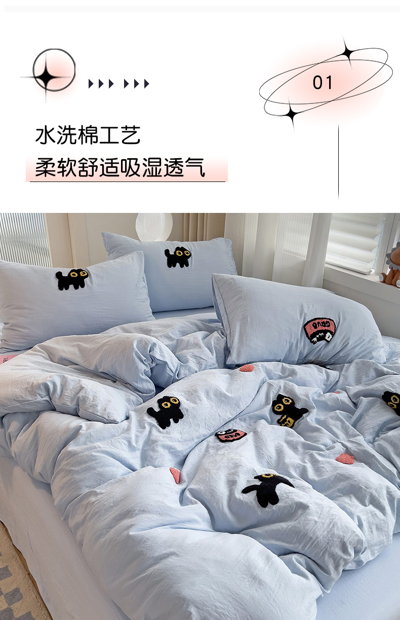 当前位置: 91家纺网 > 商品网购 > 床品套件 > 四件套 > 水洗棉四件套 > 韩巢家纺 2024新款四季通用超柔水洗棉毛巾绣四件套-幸运猫系列(提供卖家秀) 幸运猫浅蓝
