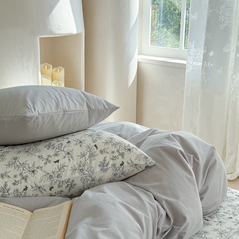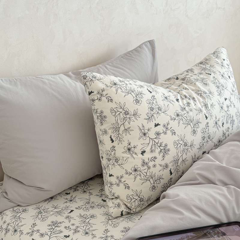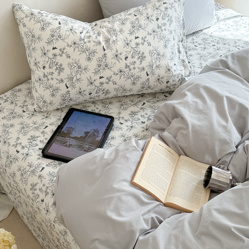 柚子YOUTH 2024新款全棉水洗棉碎花温柔系四件套 素描花