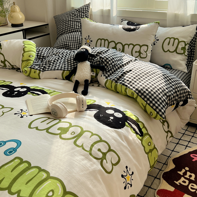 (总)繁花家居 2025软爆高克重水洗棉床单床笠单件 学生季跑量款,彩虹条,粉方格,绿方格,奶盖波波,苹果绿格,紫方格,组合图仅供展示