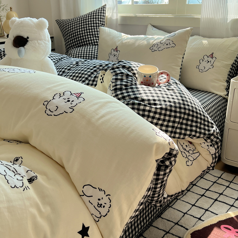 (总)繁花家居 2025新款高弹线云感木棉多层纱花边超软四件套-风格二,小花兔兔,小猫苹果,彩色南瓜,彩色苹果,粉粉小呆猫,黑猫花花,蝴蝶结爱心,回头小猫,色彩斑斓,森林公园,圣代甜喵-米