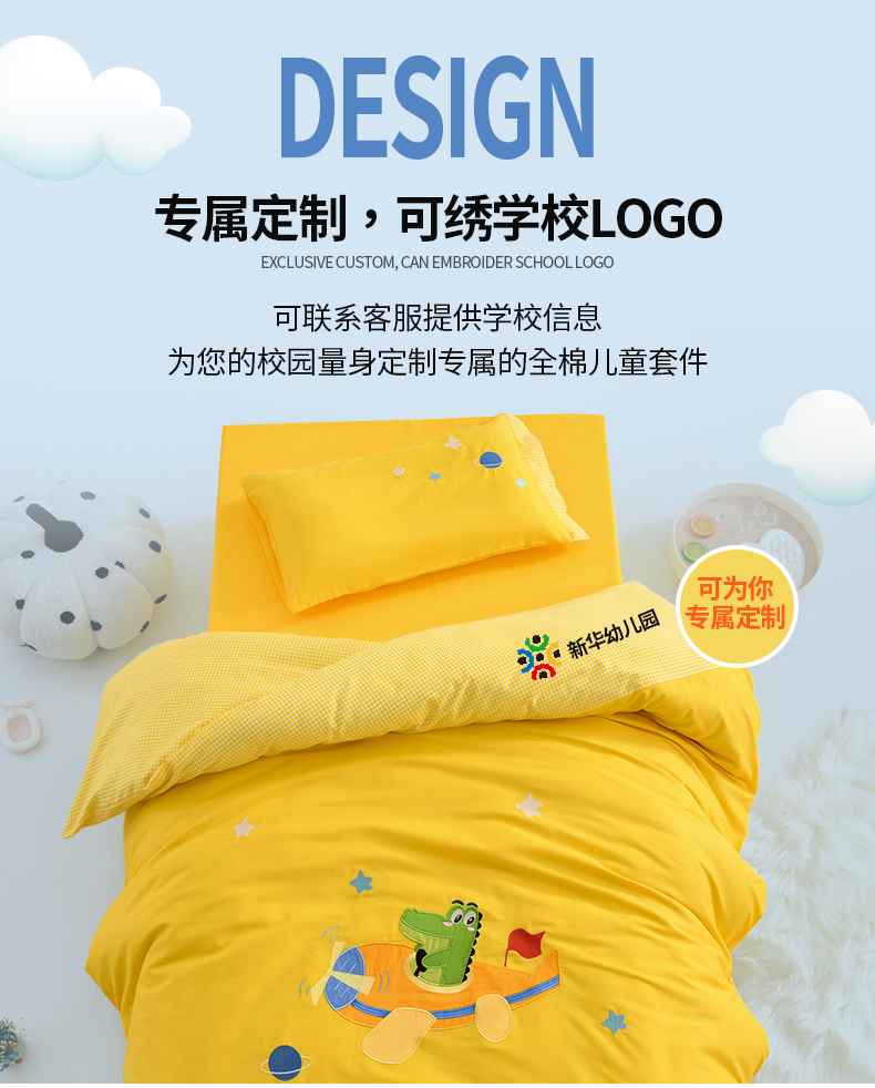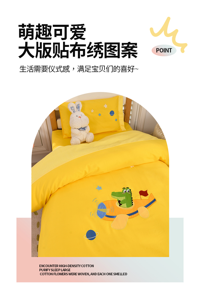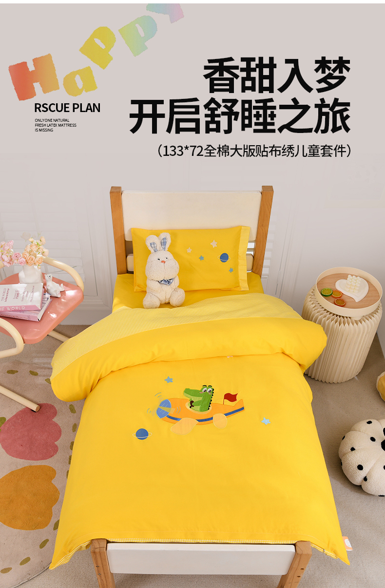 当前位置: 91家纺网 > 商品网购 > 床品套件 > 六件套 > 嗨皮宝贝 2024新款全棉绣花幼儿园被子三件套儿童午睡棉被褥宝宝入园六件套 恐龙飞船-姜黄