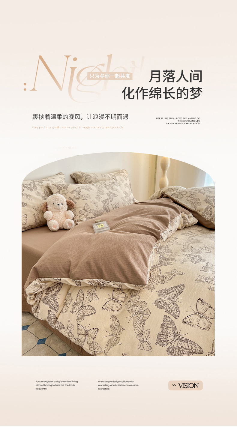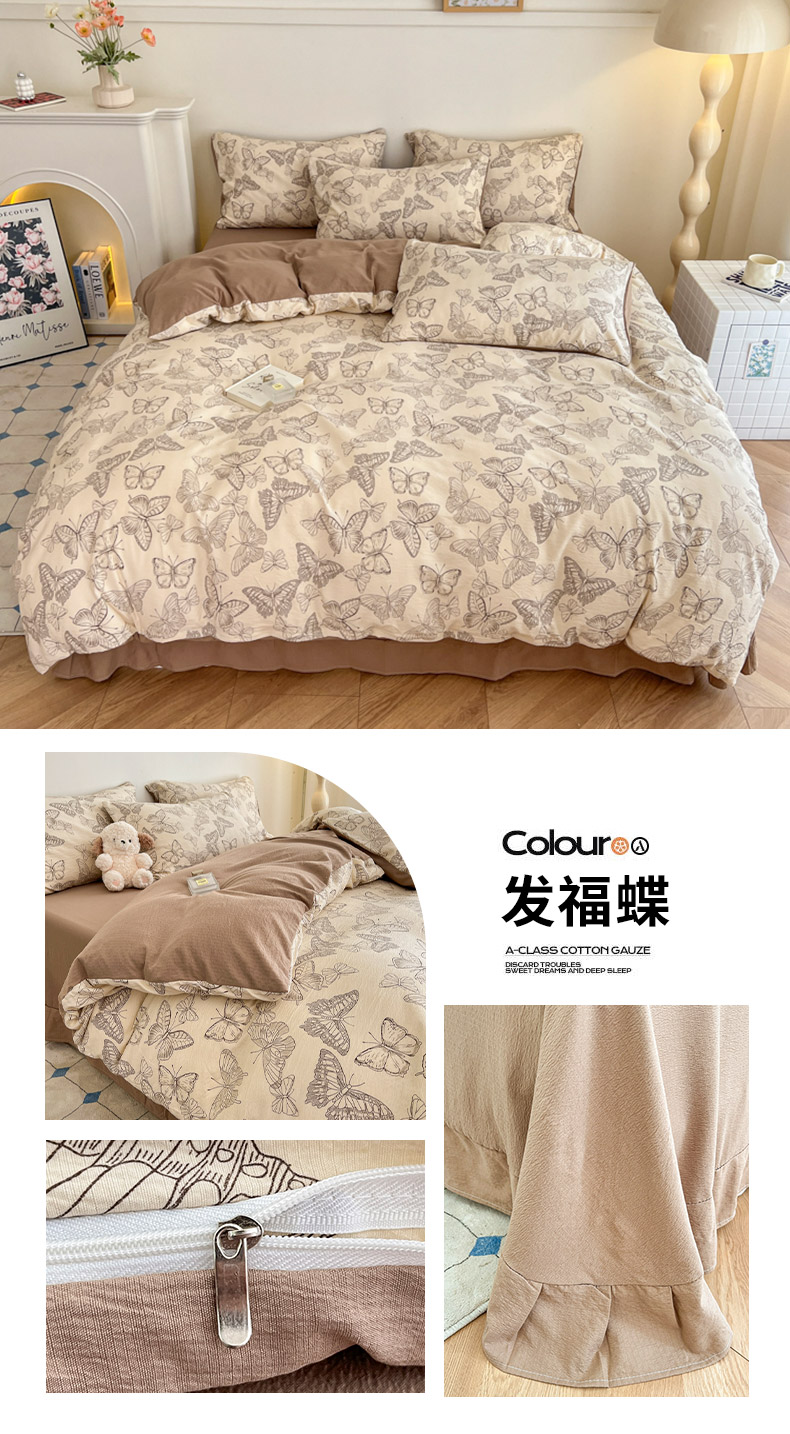 (总)金梦拉家纺 2025新款提花纱布棉双层纱皱皱纱四件套,微醺玫瑰,梦华录,花开半夏,漫山紫野,薄荷初夏,点点草莓,法式浪漫,粉杏绿,花颜,惠心,桔梗紫,咖调蝴蝶结,快乐狗,梨落,林间兔,绿意,绿茵,满园春色,曼塔庄园,萌萌小兔,雾野山茶,小野菊,寻春,樱桃,月梨漫香,芝士黄,枝蔓绿,紫线调,紫樱落