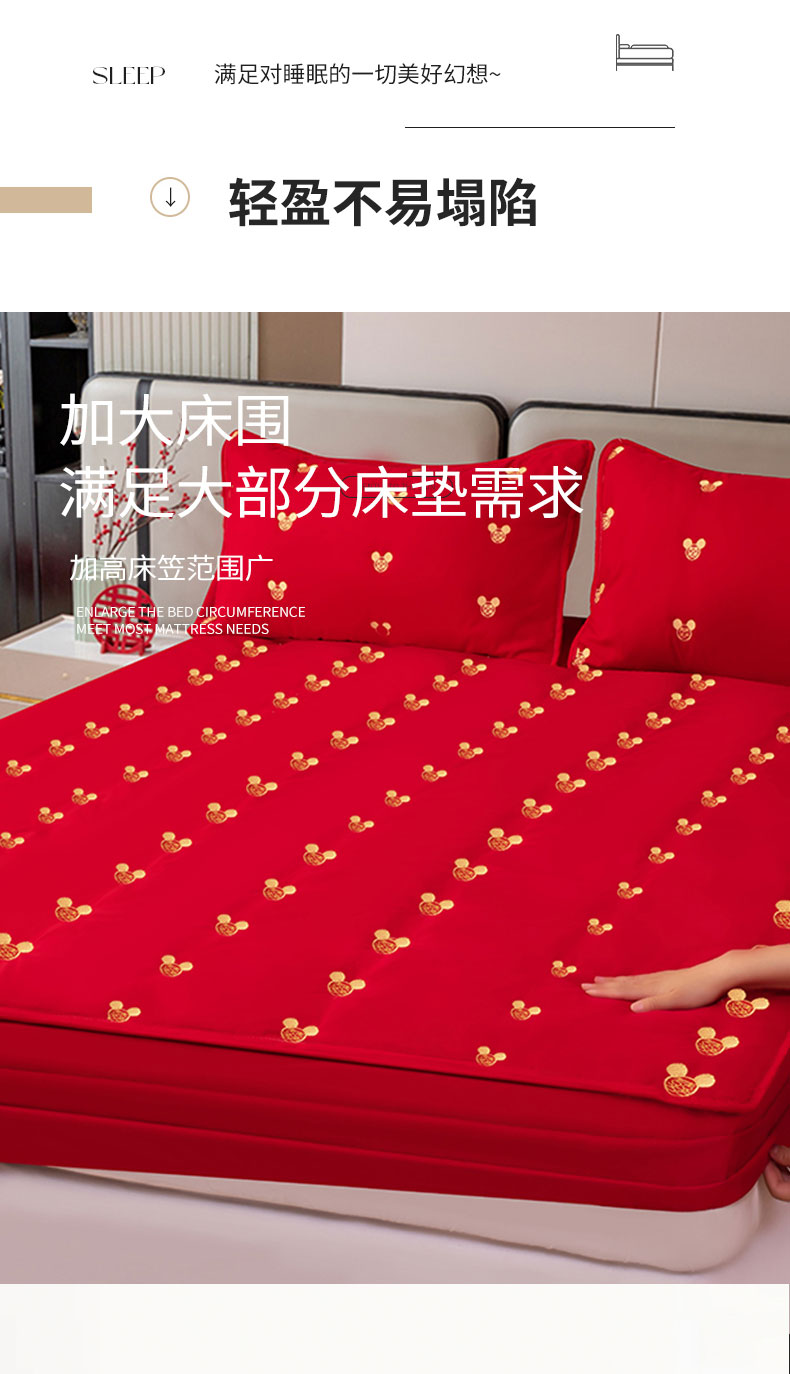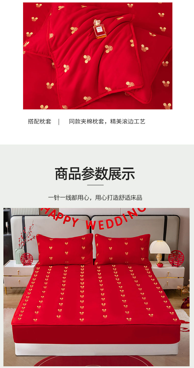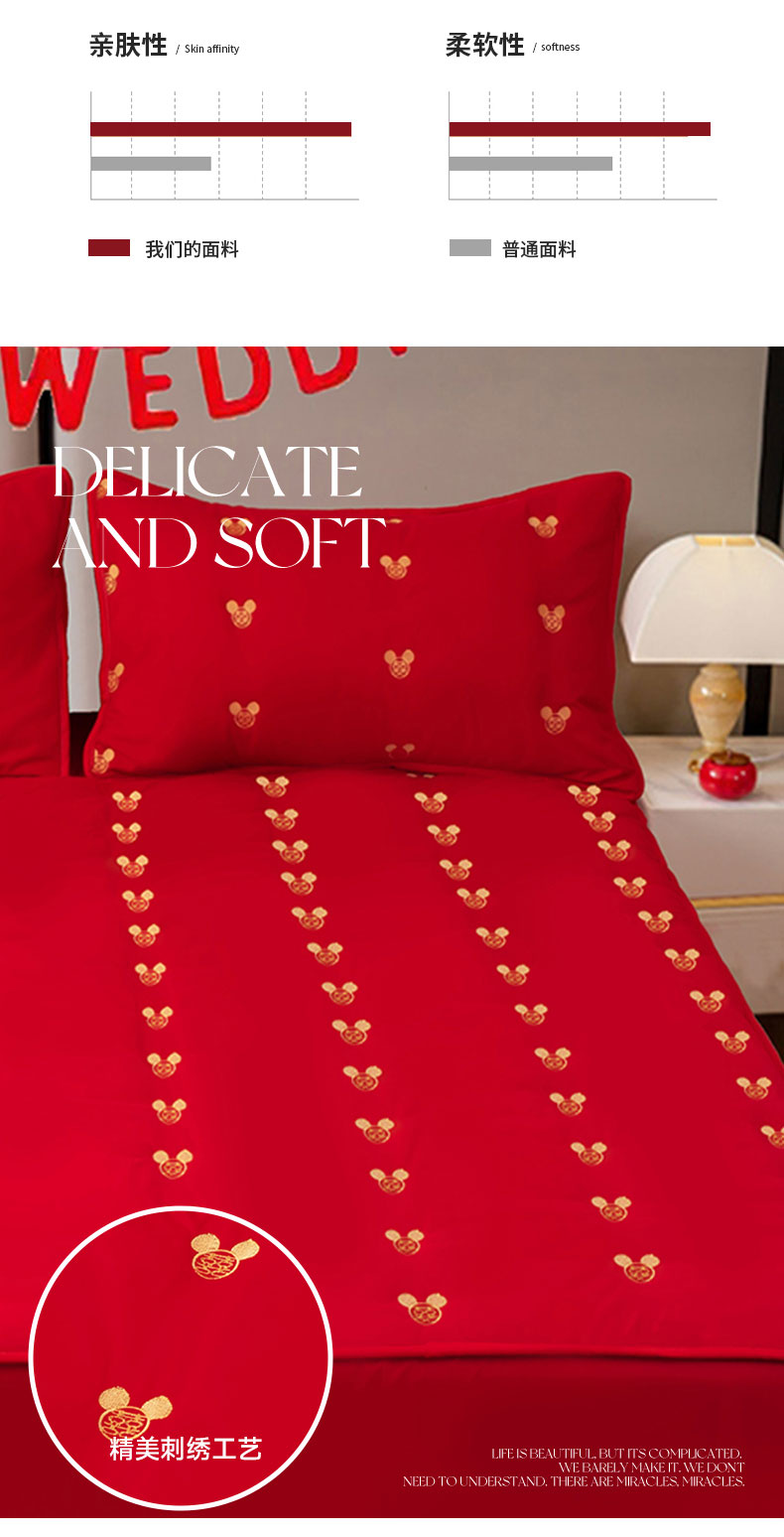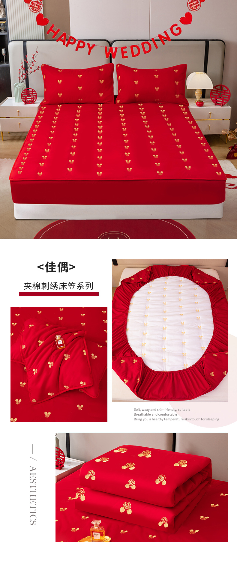 商品名称:卓缦家纺 2024新款婚庆夹棉刺绣款单床笠三件套 佳偶