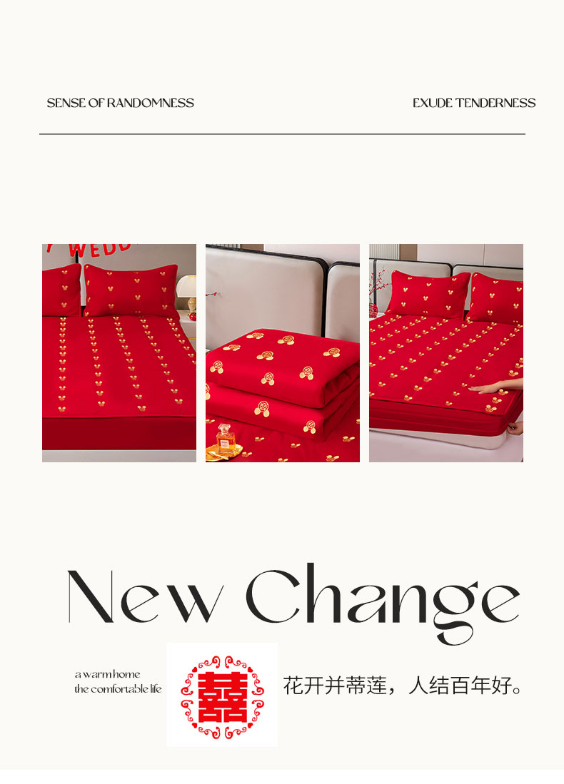 卓缦家纺 2024新款婚庆夹棉刺绣款单床笠三件套 佳偶