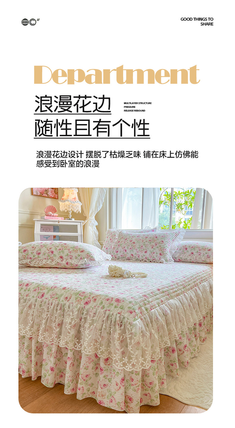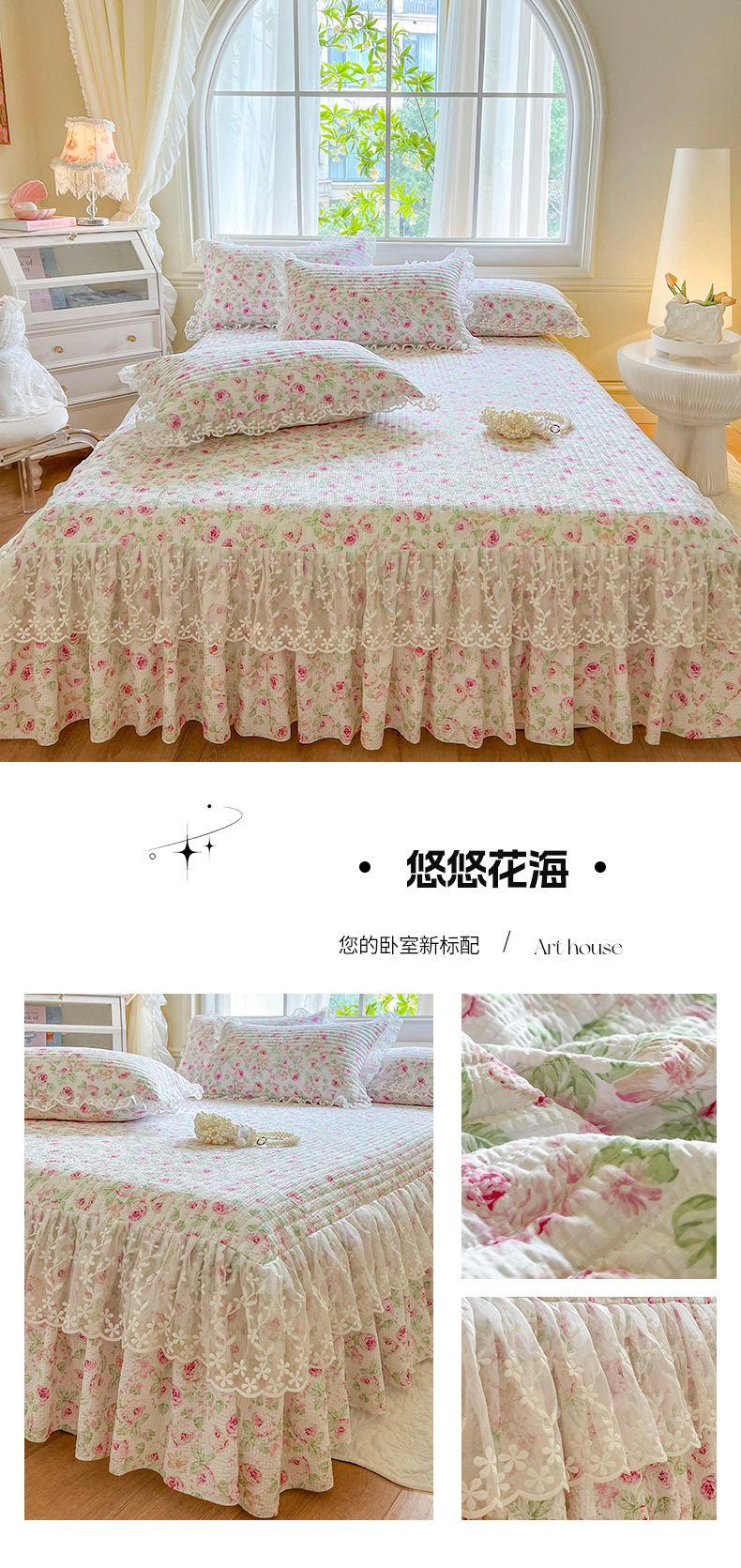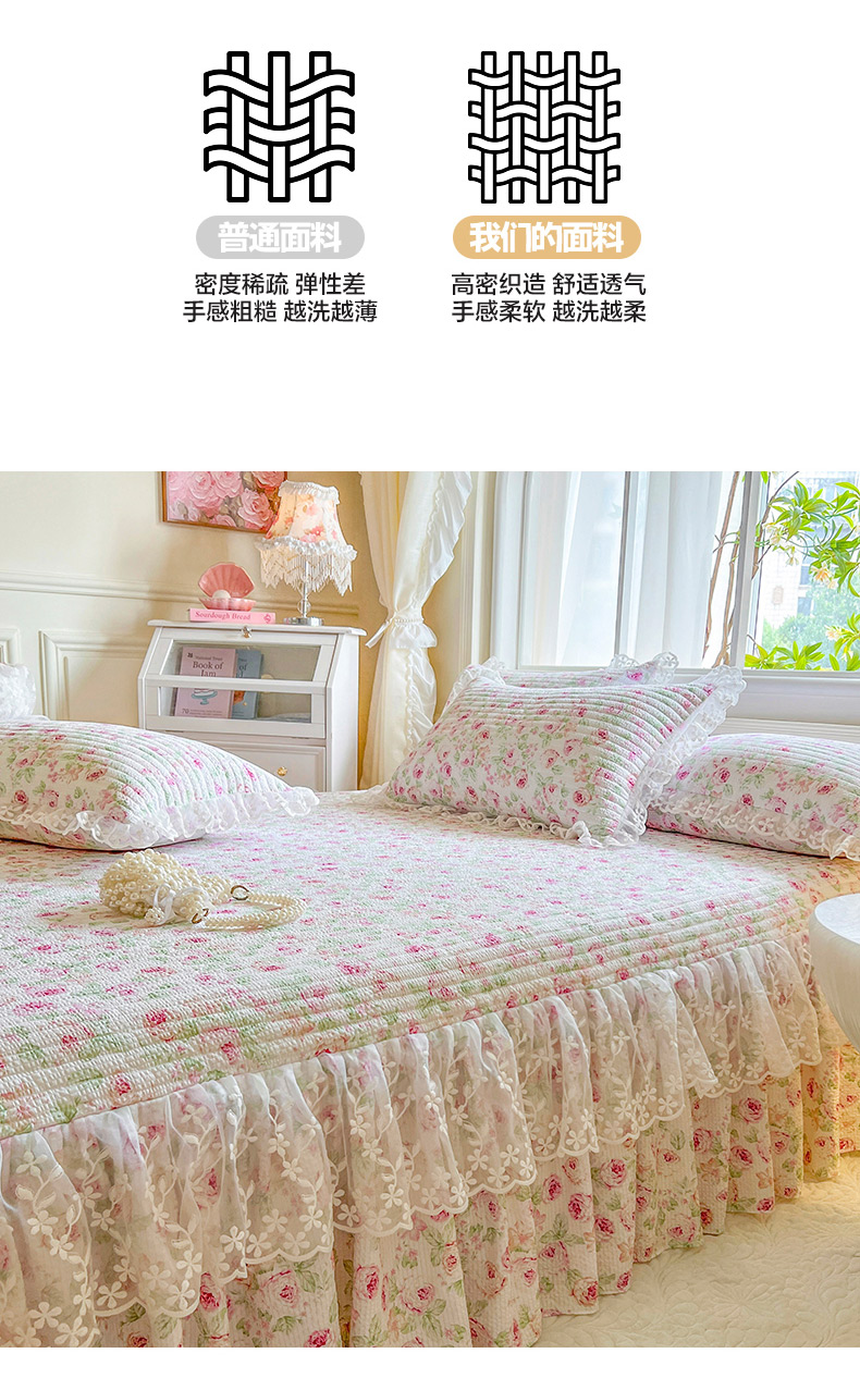 当前位置: 91家纺网 > 商品网购 > 床品套件 > 三件套 > 网红馆(ck家纺) 2025新款泡泡棉花边床裙三件套 悠悠花海