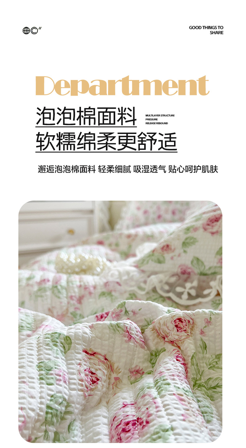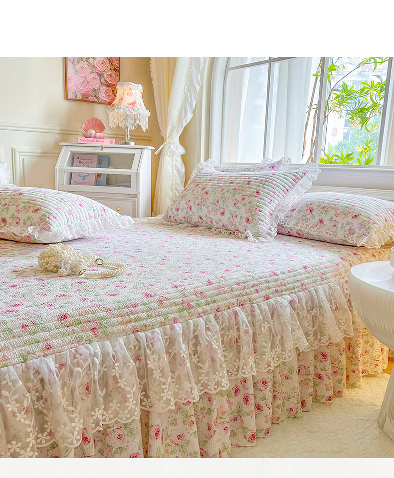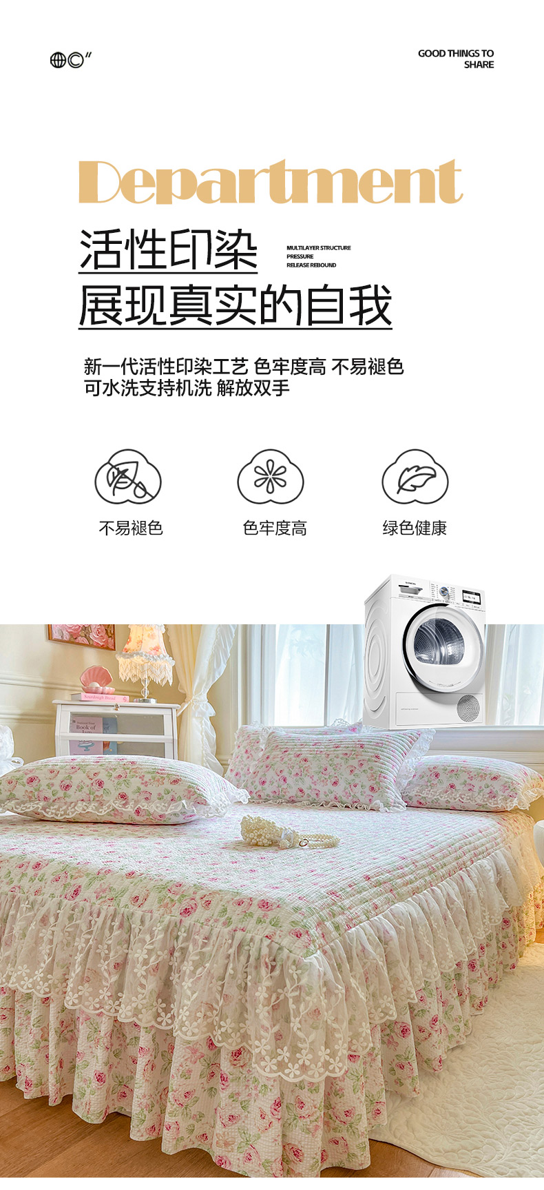 当前位置: 91家纺网 > 商品网购 > 床品套件 > 三件套 > 网红馆(ck家纺) 2025新款泡泡棉花边床裙三件套 悠悠花海