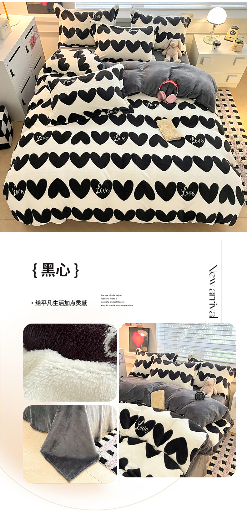 商品名称:启程家纺 2024新款A类秋冬INS风牛奶绒四件套 黑心