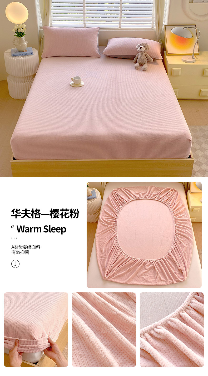 • 91家纺网 家纺一手货源 找家纺 莱米家纺 2024新款秋冬华夫格加密千鸟格牛奶绒床笠 华夫格-樱花粉
