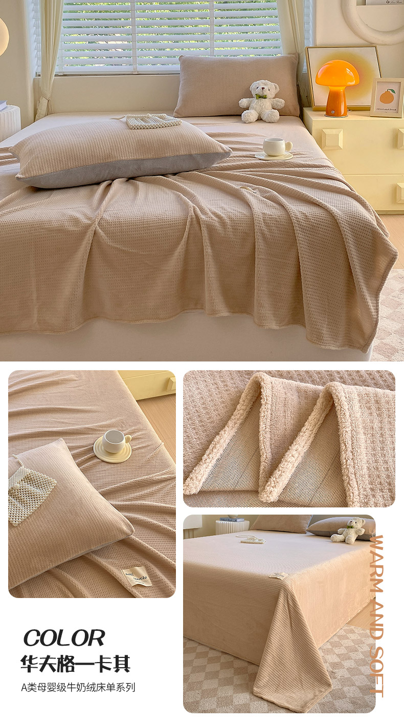 莱米家纺 2024新款秋冬华夫格加密千鸟格牛奶绒床单 华夫格-卡其
