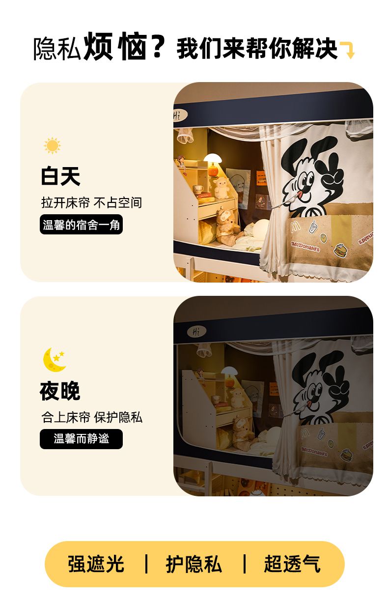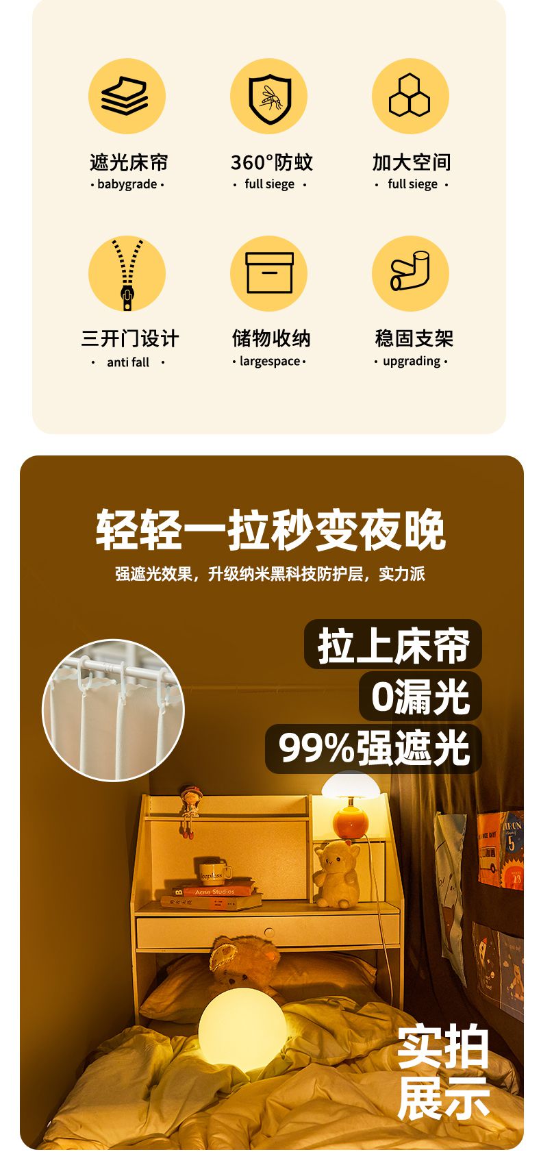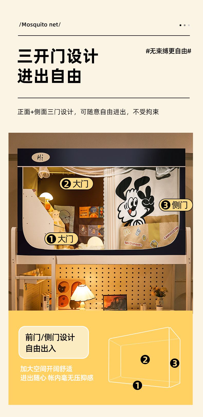 (总)安金蚊帐2025新款防蚊遮光一体99%强遮光学生宿舍上下铺遮光学生蚊帐-黄色系列,好学布布,团布布,星泡泡,贪吃猫,野餐猫,好拍档,好学卡卡,小花熊,尼尼熊,小猫莉