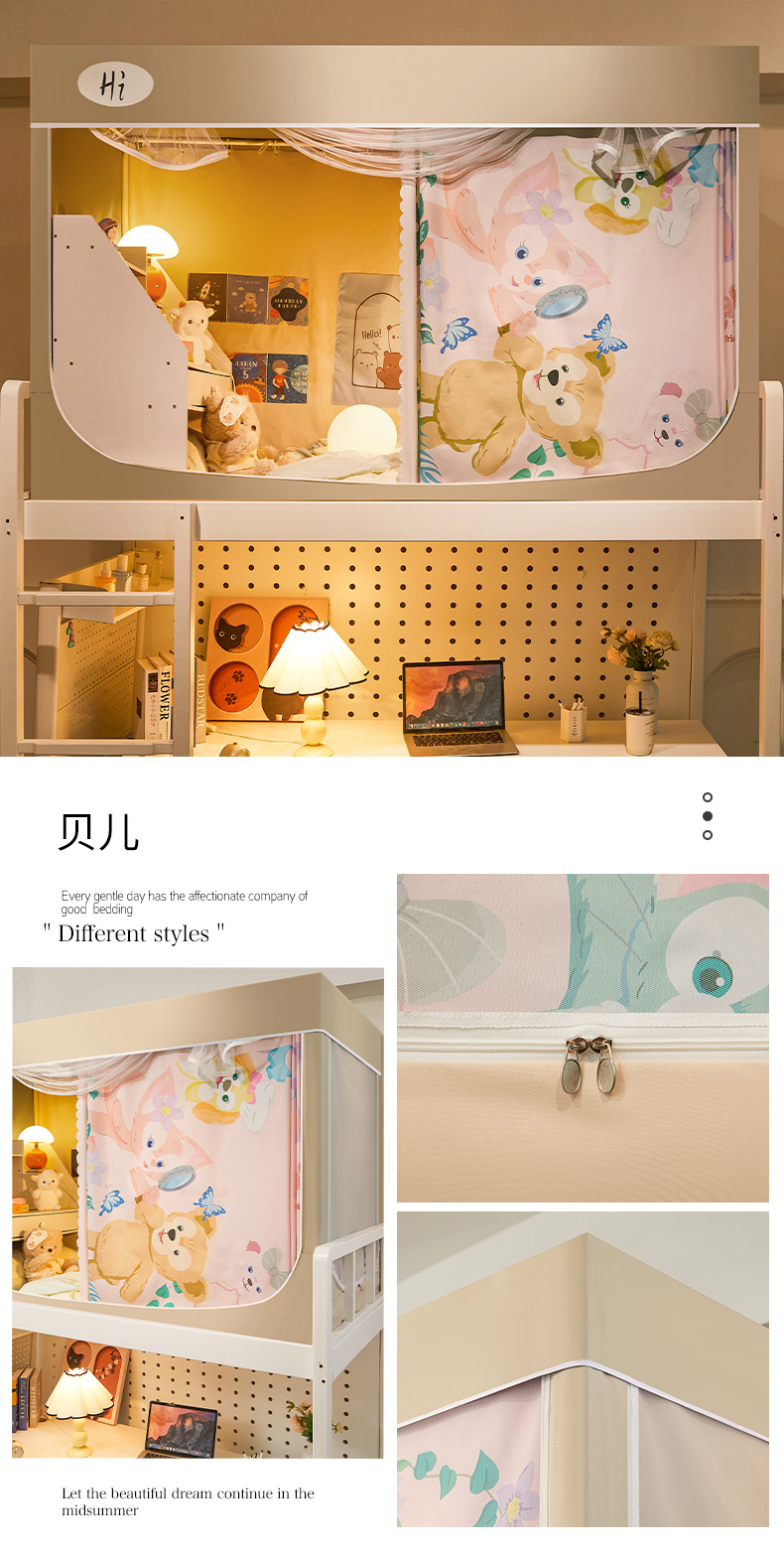 (总)安金蚊帐2025新款防蚊遮光一体99%强遮光学生宿舍上下铺遮光学生蚊帐-粉色系列,公主狗,聚会猫,美梦猫,出行莉莉,萌萌熊,害羞布布,爱心布布,快乐莉莉,美美熊,贝儿城堡