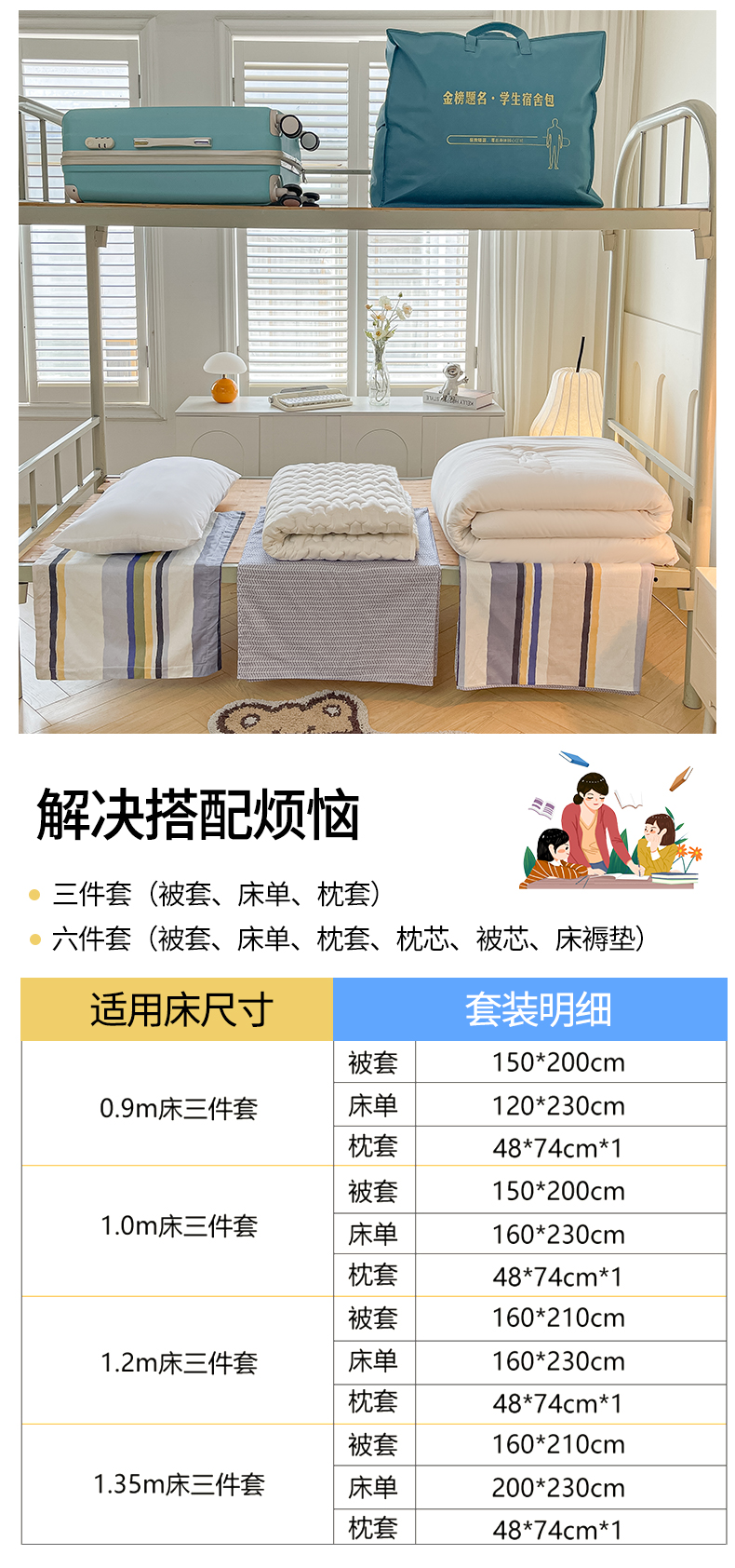 0.9米床(三件套+4斤羽丝棉被芯+床垫+枕芯) | ¥160.00 |