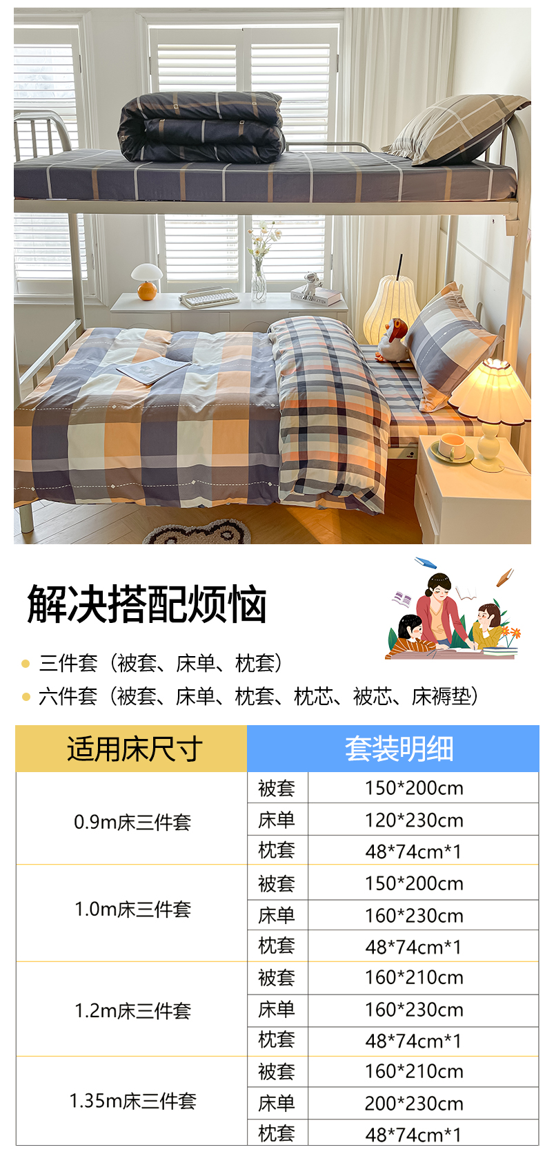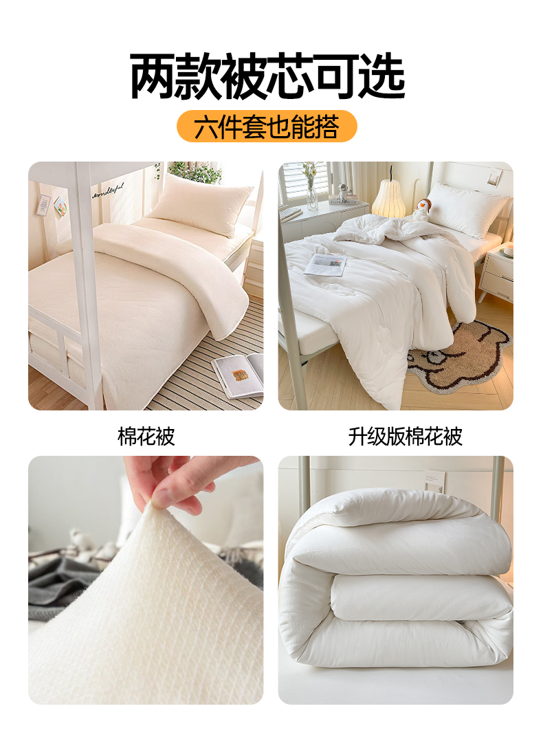 当前位置: 91家纺网 > 商品网购 > 床品套件 > 四件套 > 全棉普通四件套 > 2025新款全棉印花12868学生宿舍床三件套被芯床垫枕芯上下铺六件套 时尚风采-桔