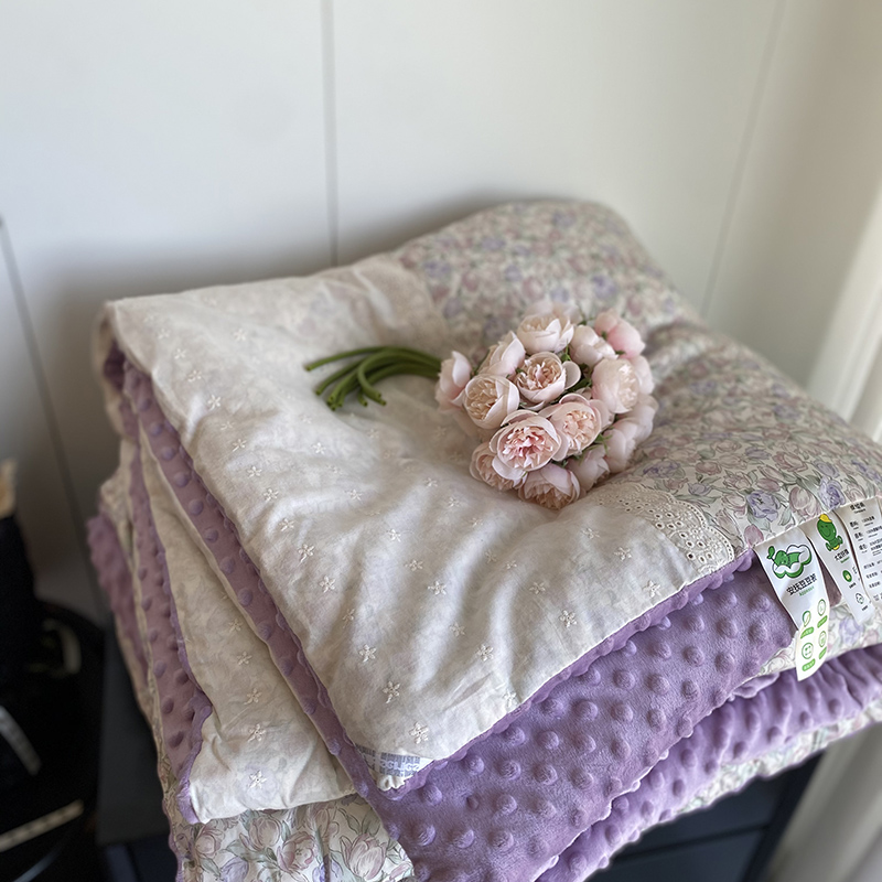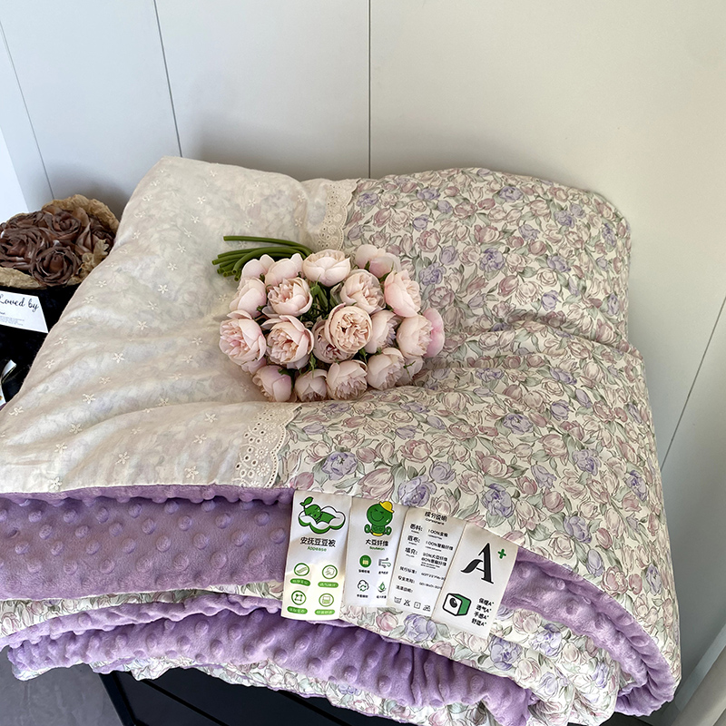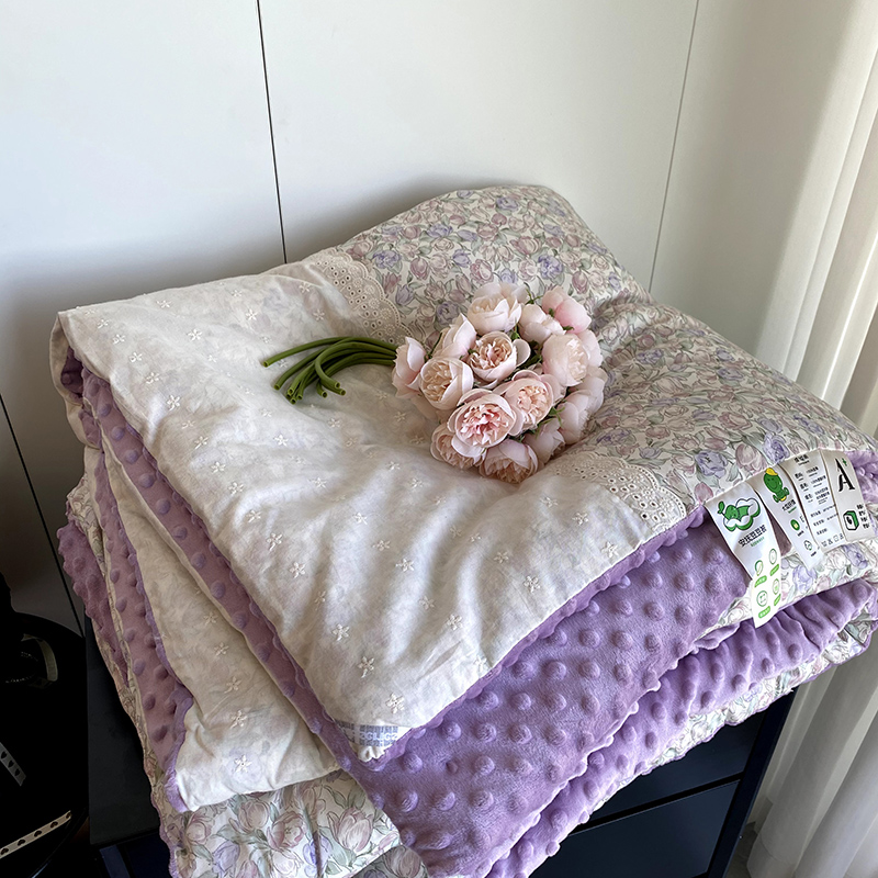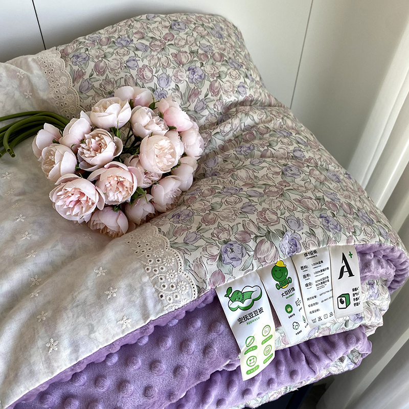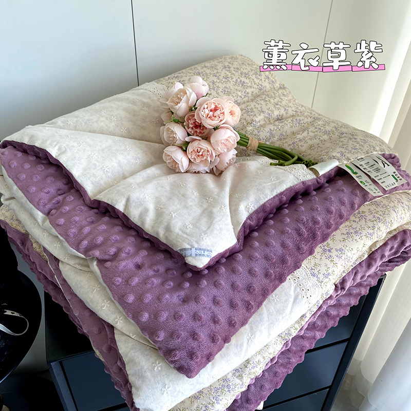 商品名称:2025新款秋冬季棉加豆豆绒法式花边款豆豆被被芯 郁金香紫