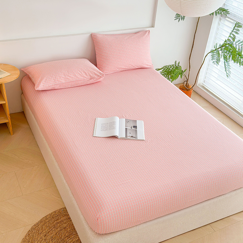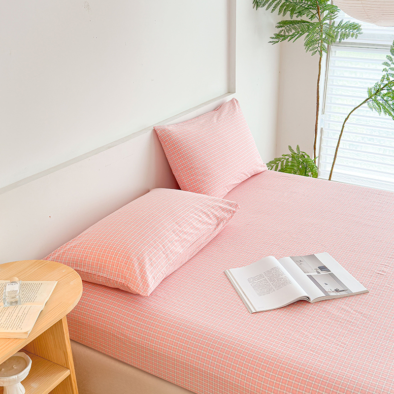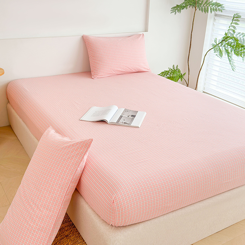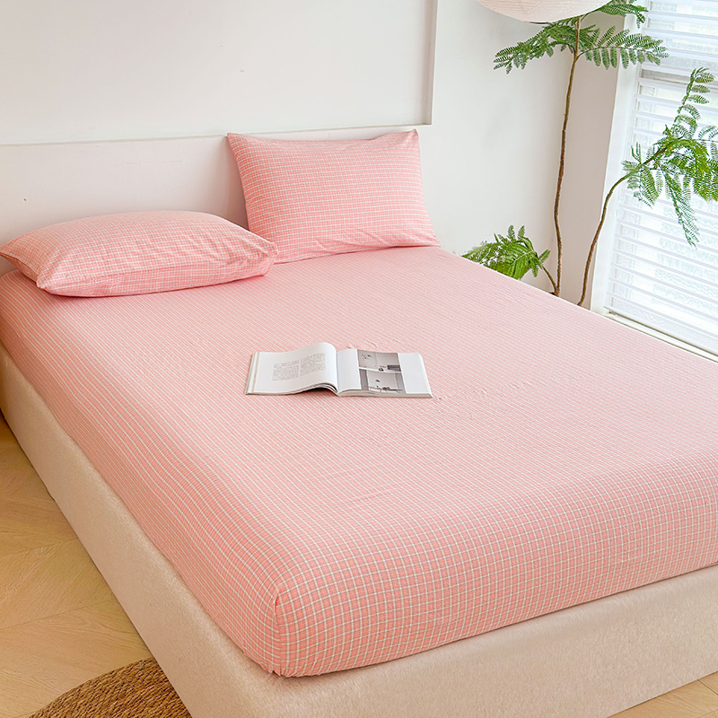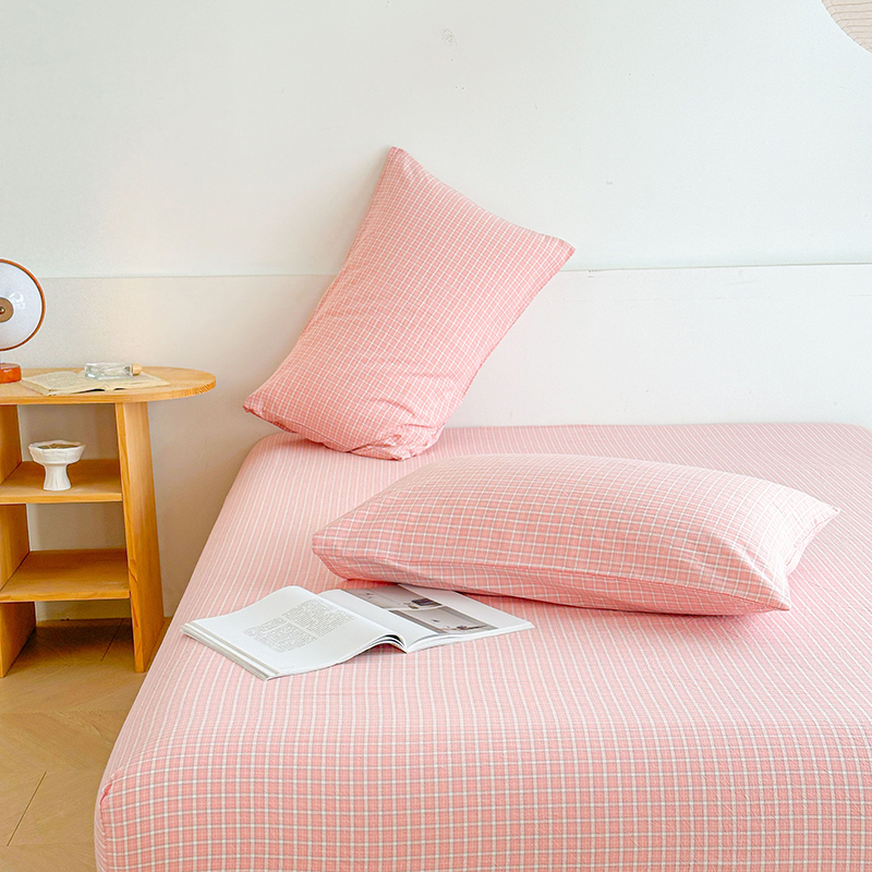 慕莎家纺 2024新款亲肤水洗色织床笠三件套 粉玉格