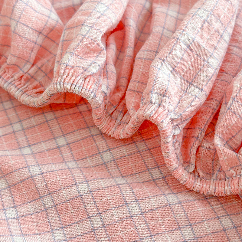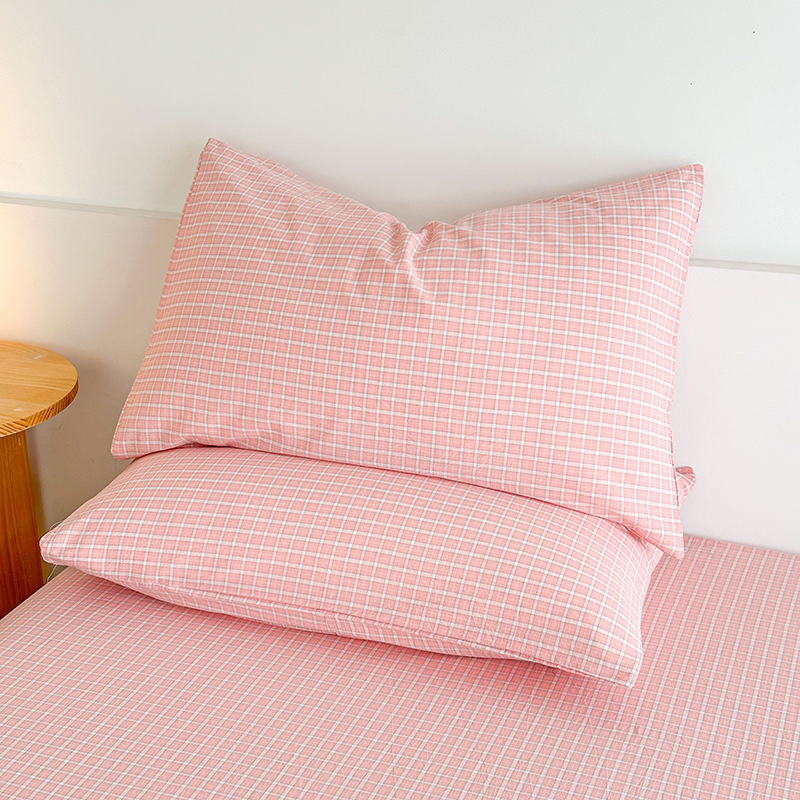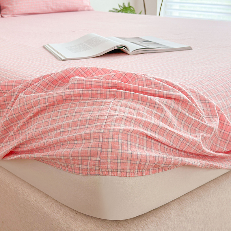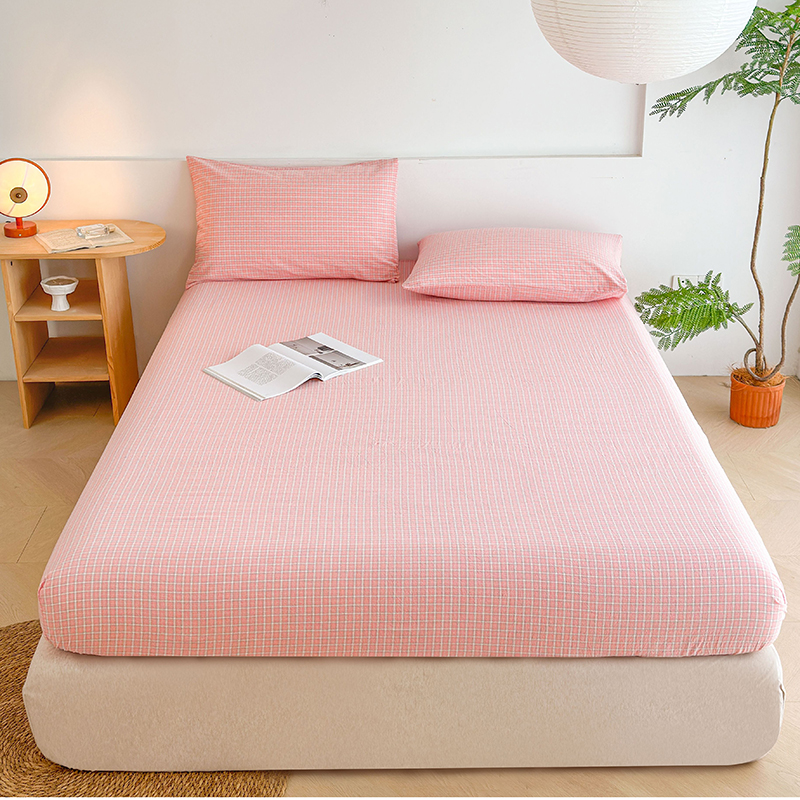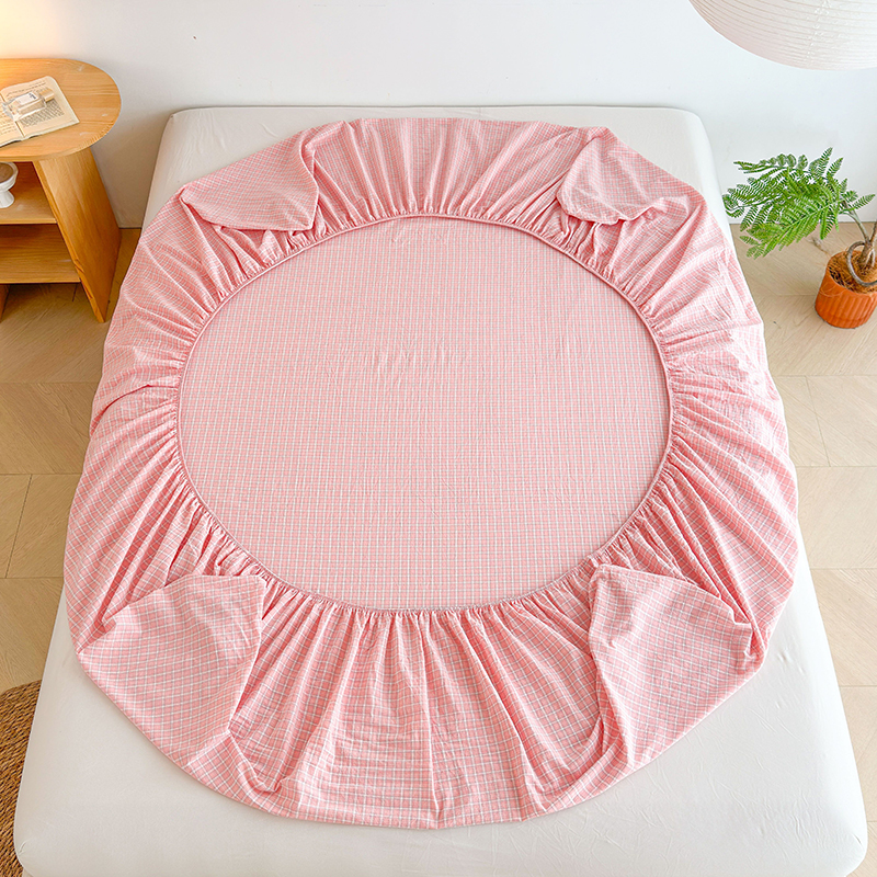 慕莎家纺 2024新款亲肤水洗色织床笠三件套 粉玉格