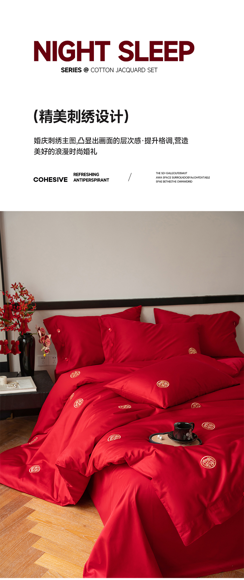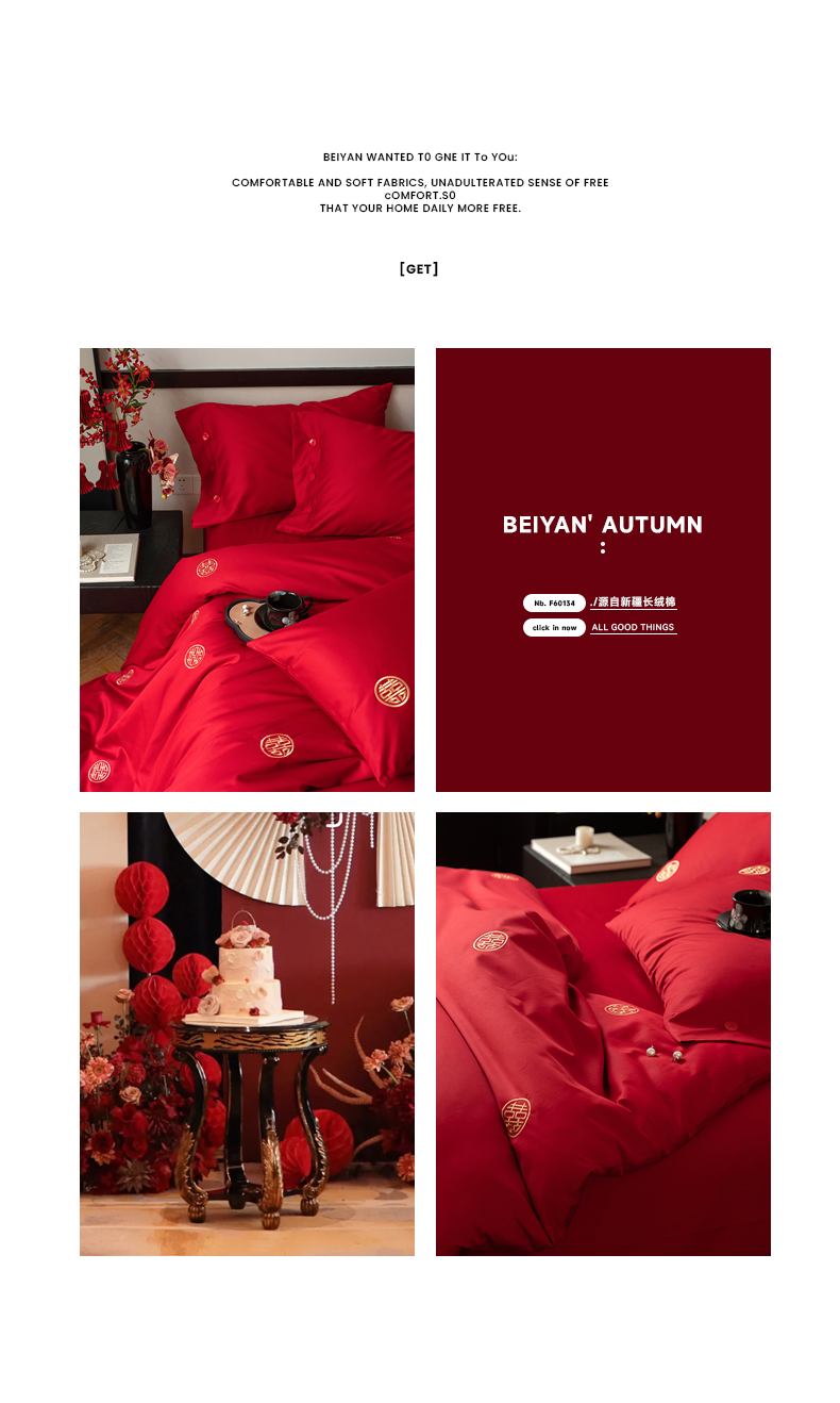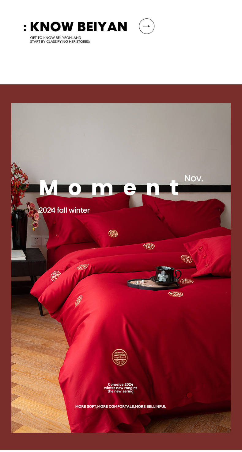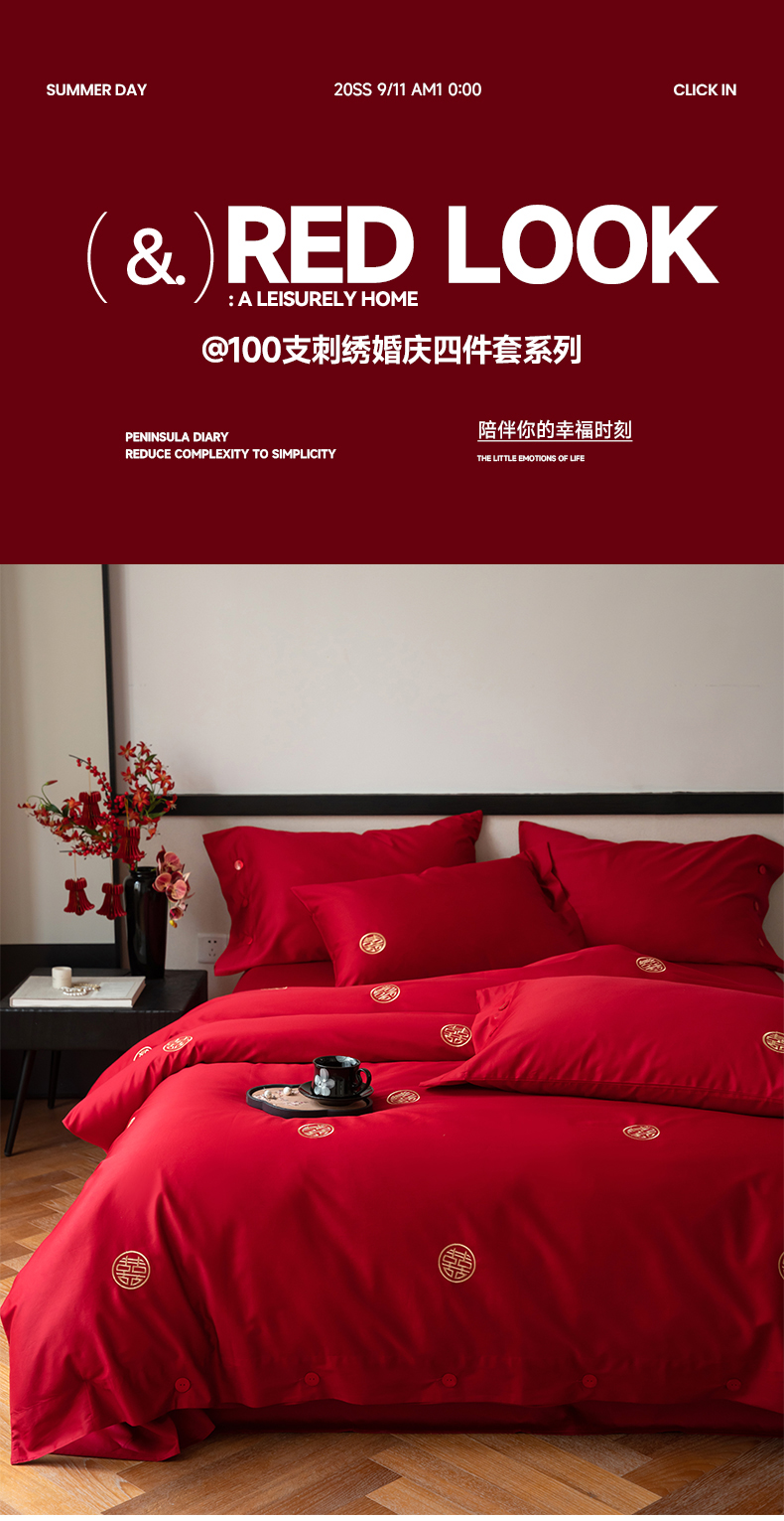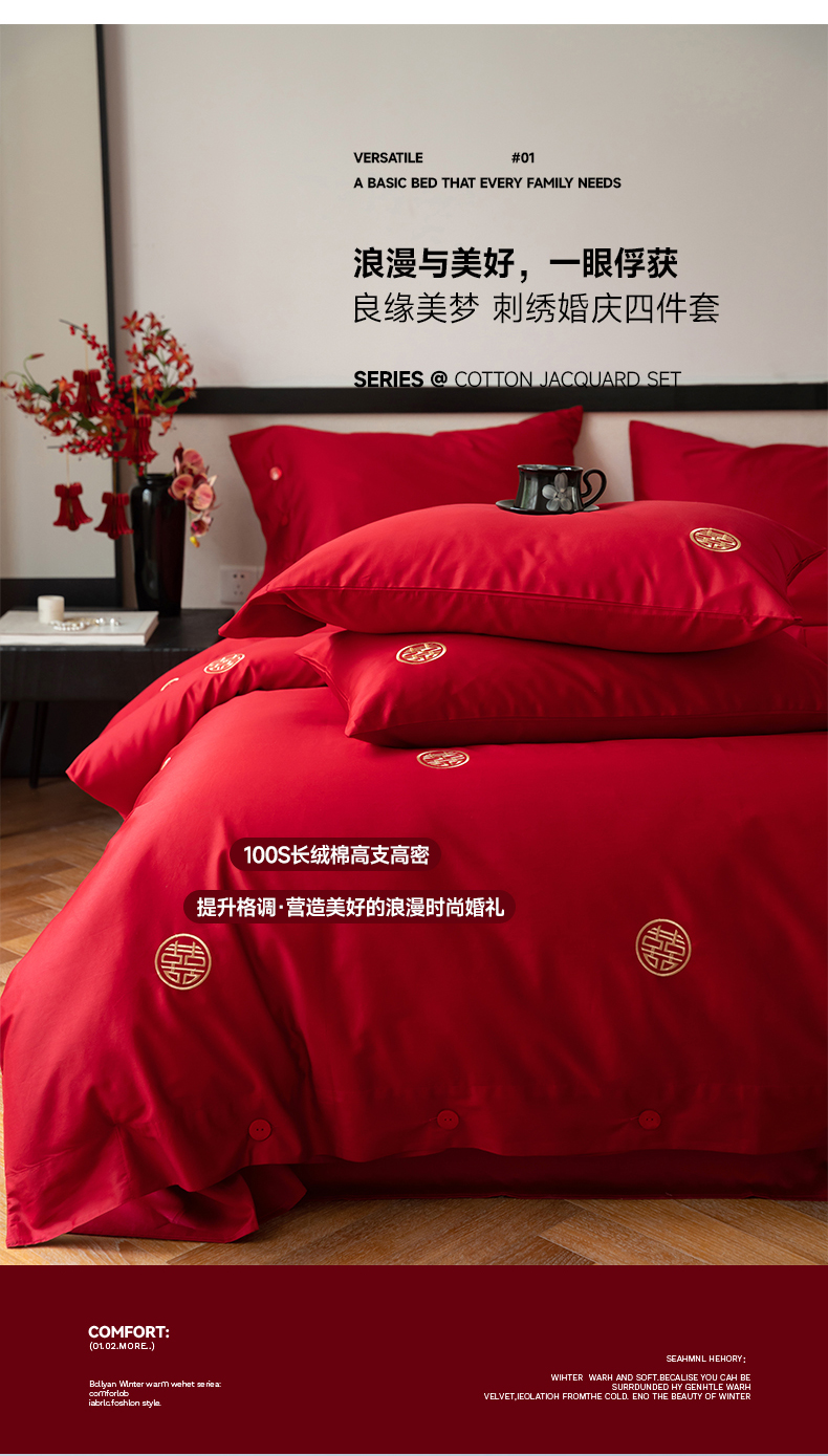 商品名称:华超针织 2024新款100支长绒棉刺绣婚庆四件套 同喜同喜