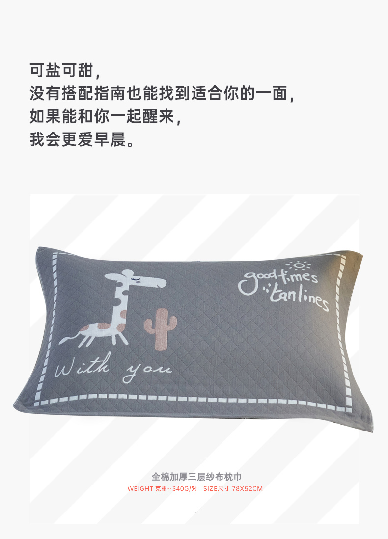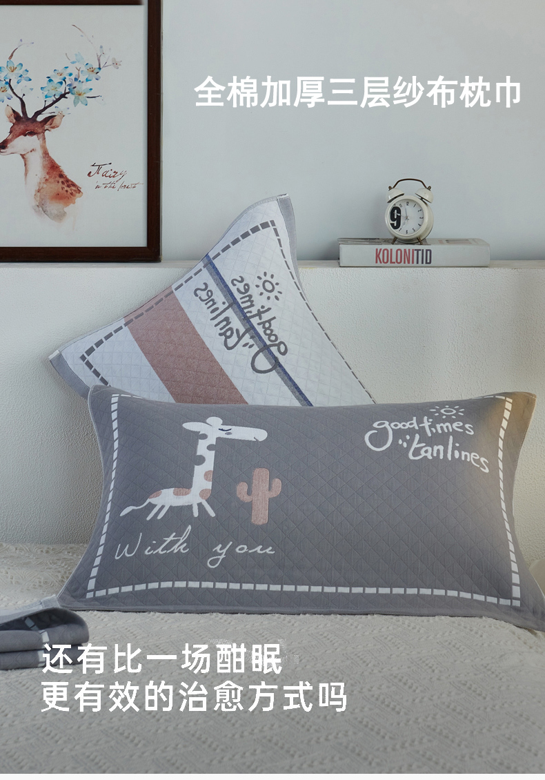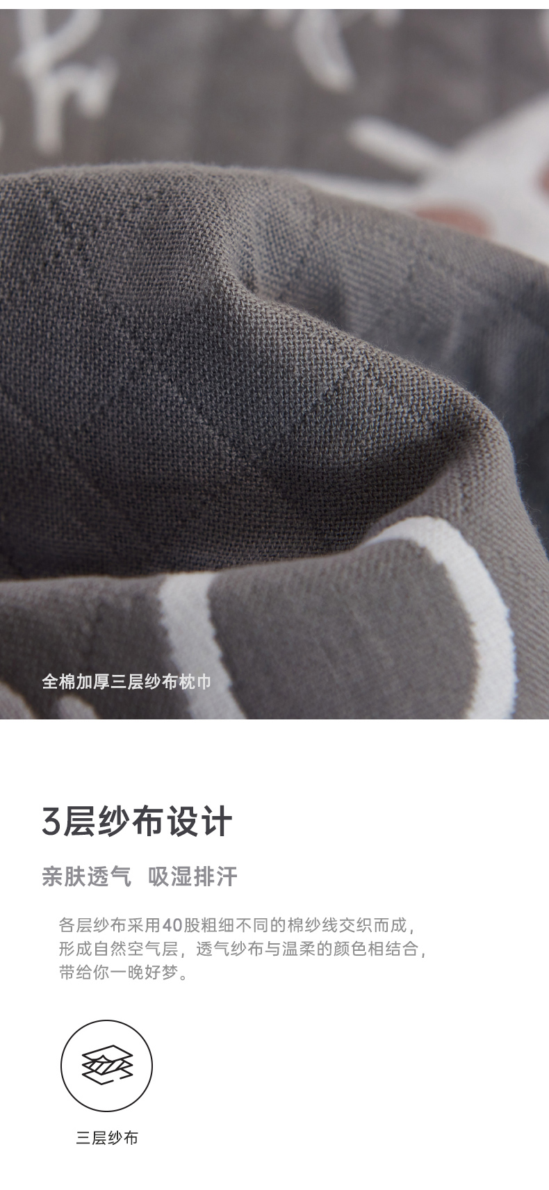 • 91家纺网 家纺一手货源 找家纺 2024新款全棉加厚三层纱布枕巾52*78cm一对 快乐小鹿灰