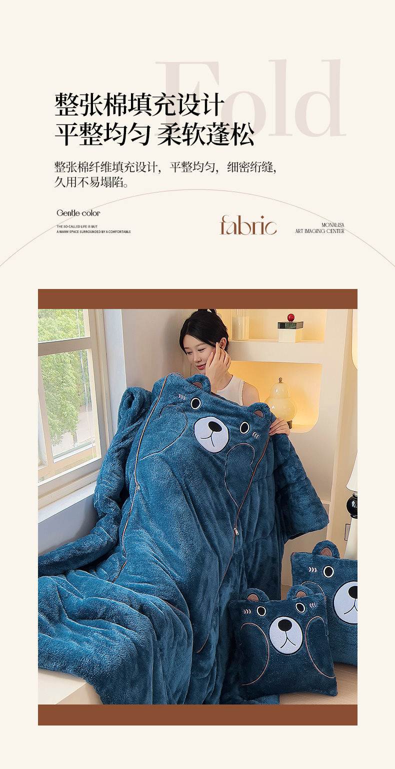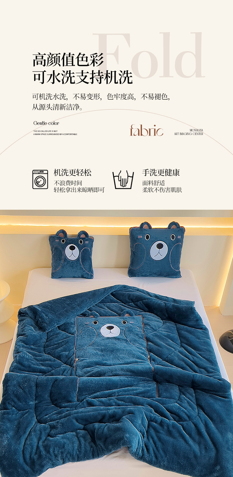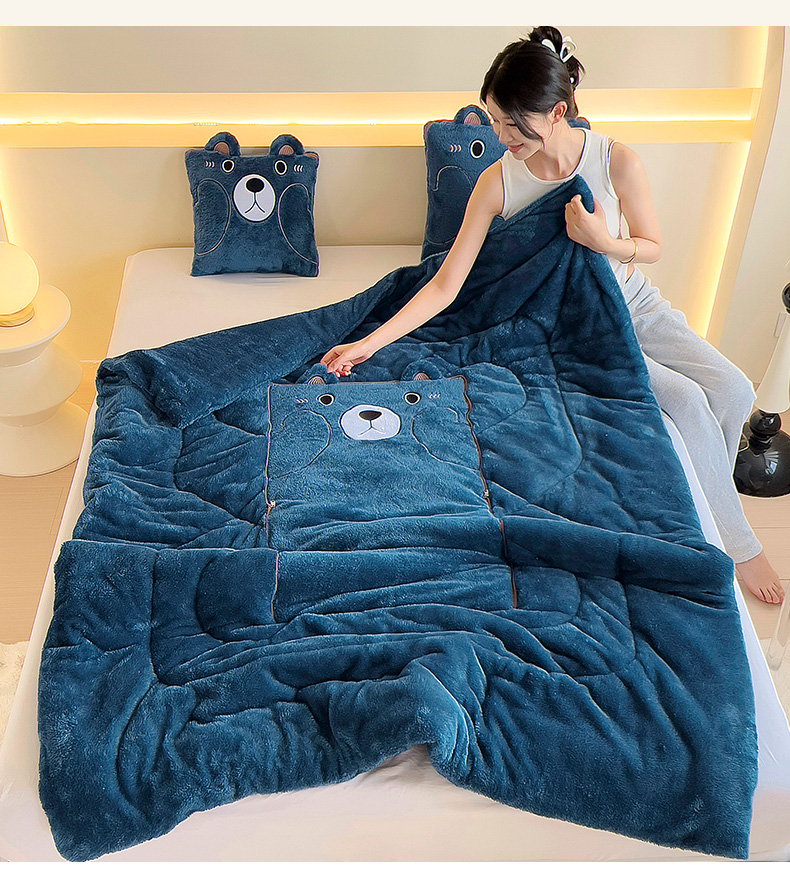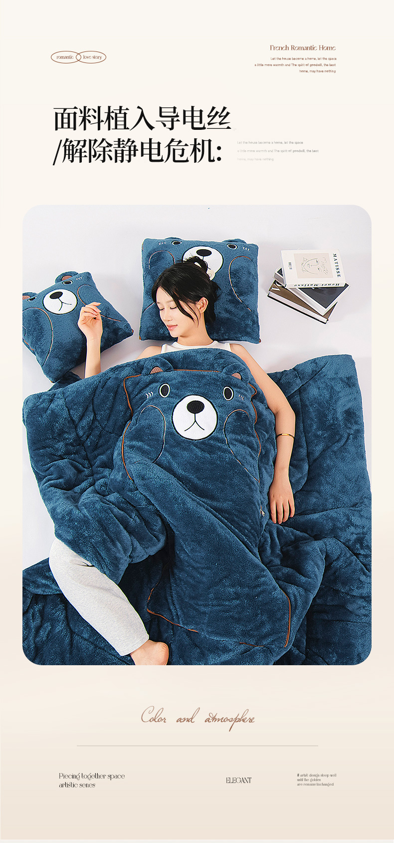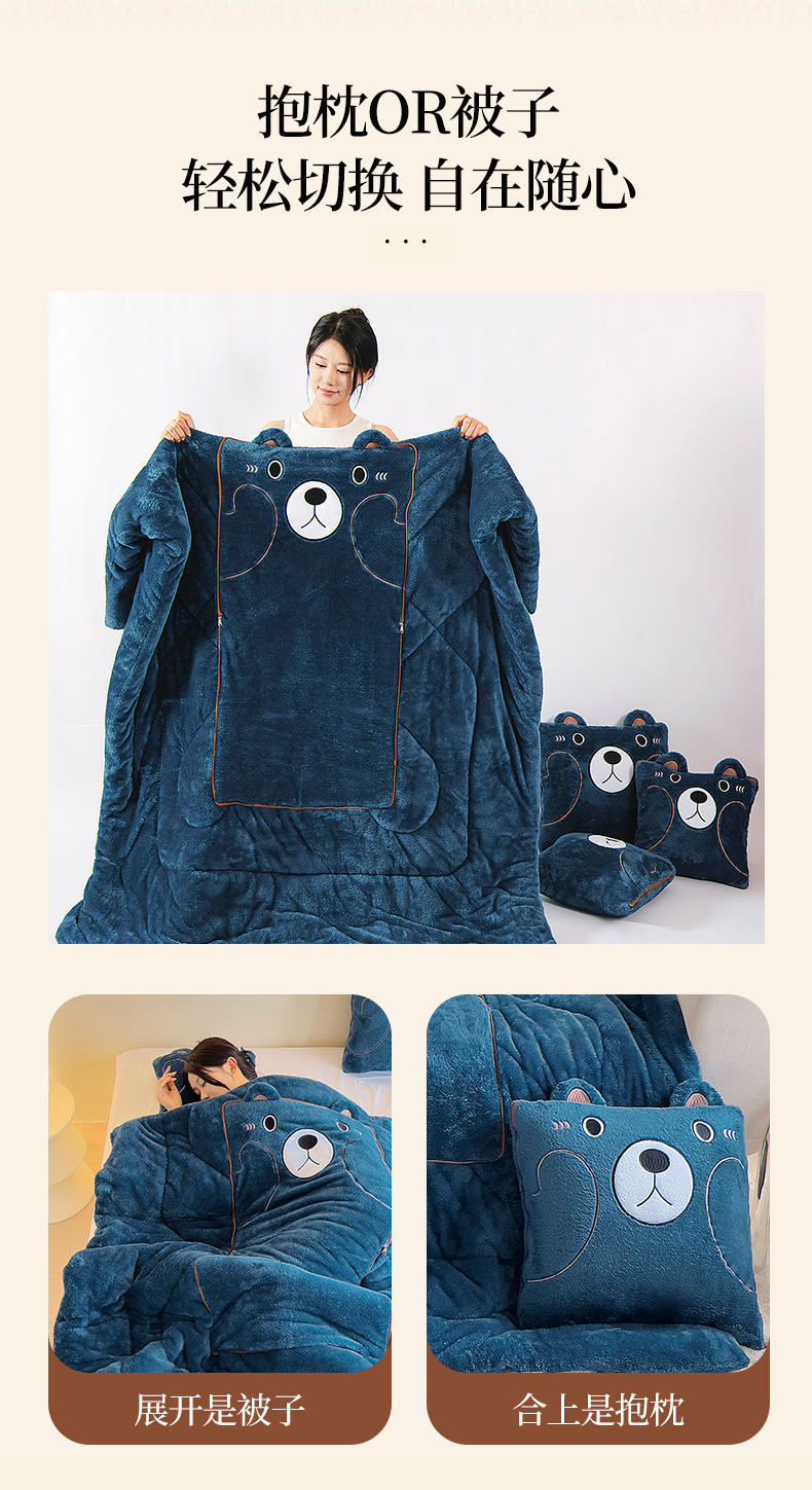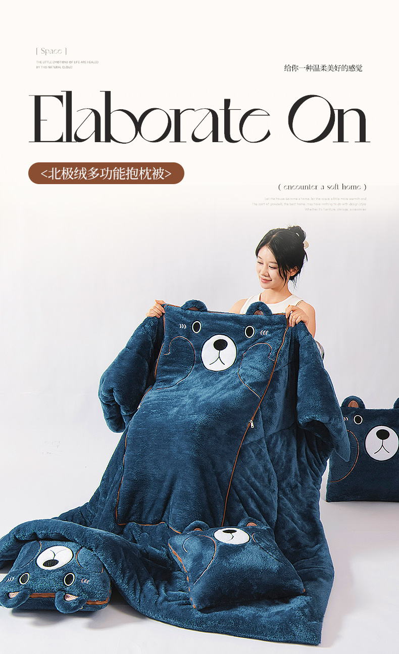 商品名称:阳光依佰抱枕被 2024秋冬新款北极绒乖乖熊多功能抱枕被 乖乖熊-星空蓝