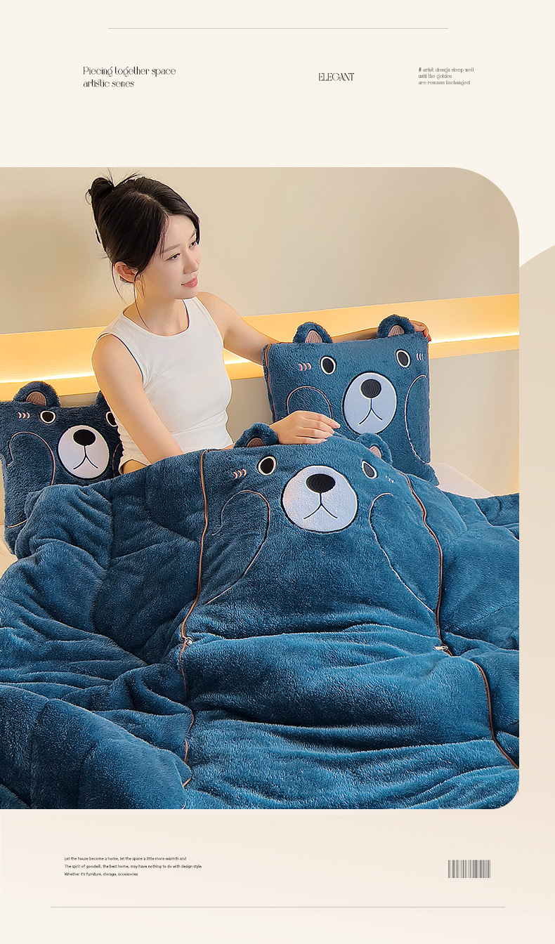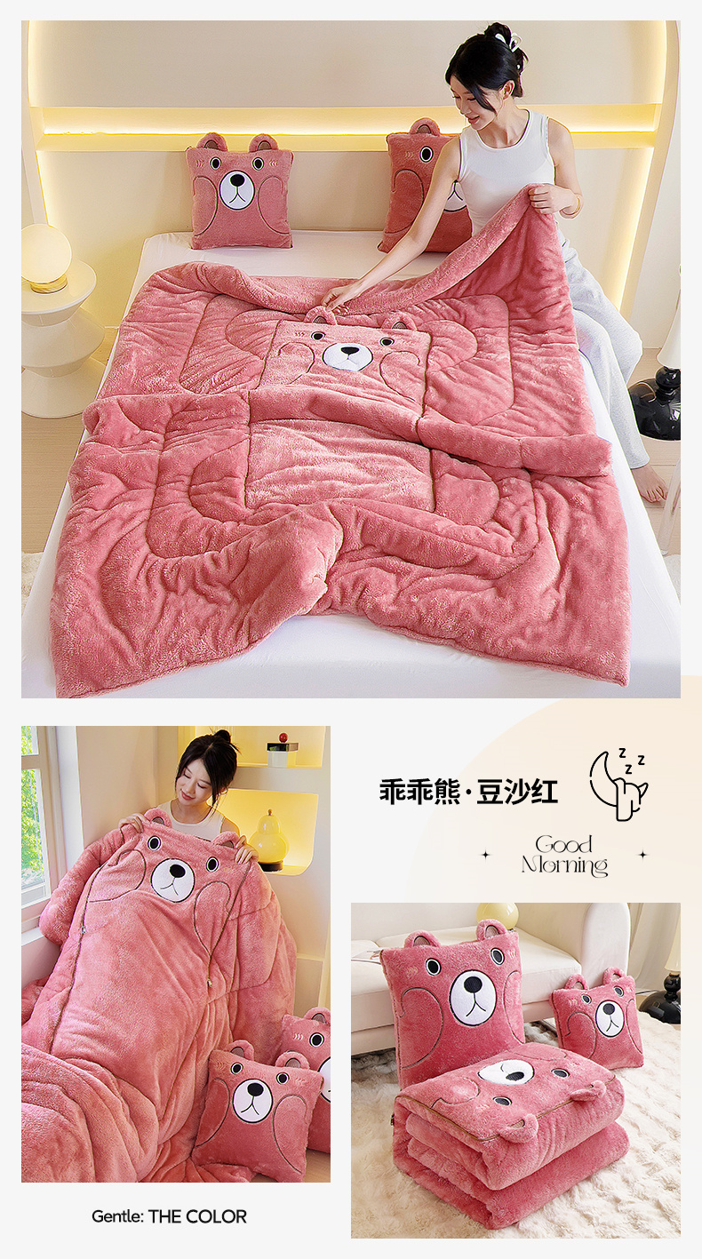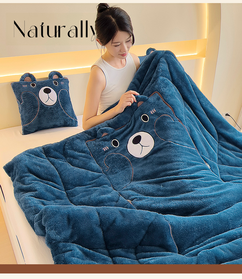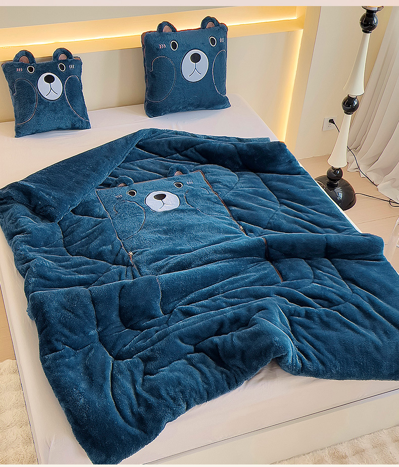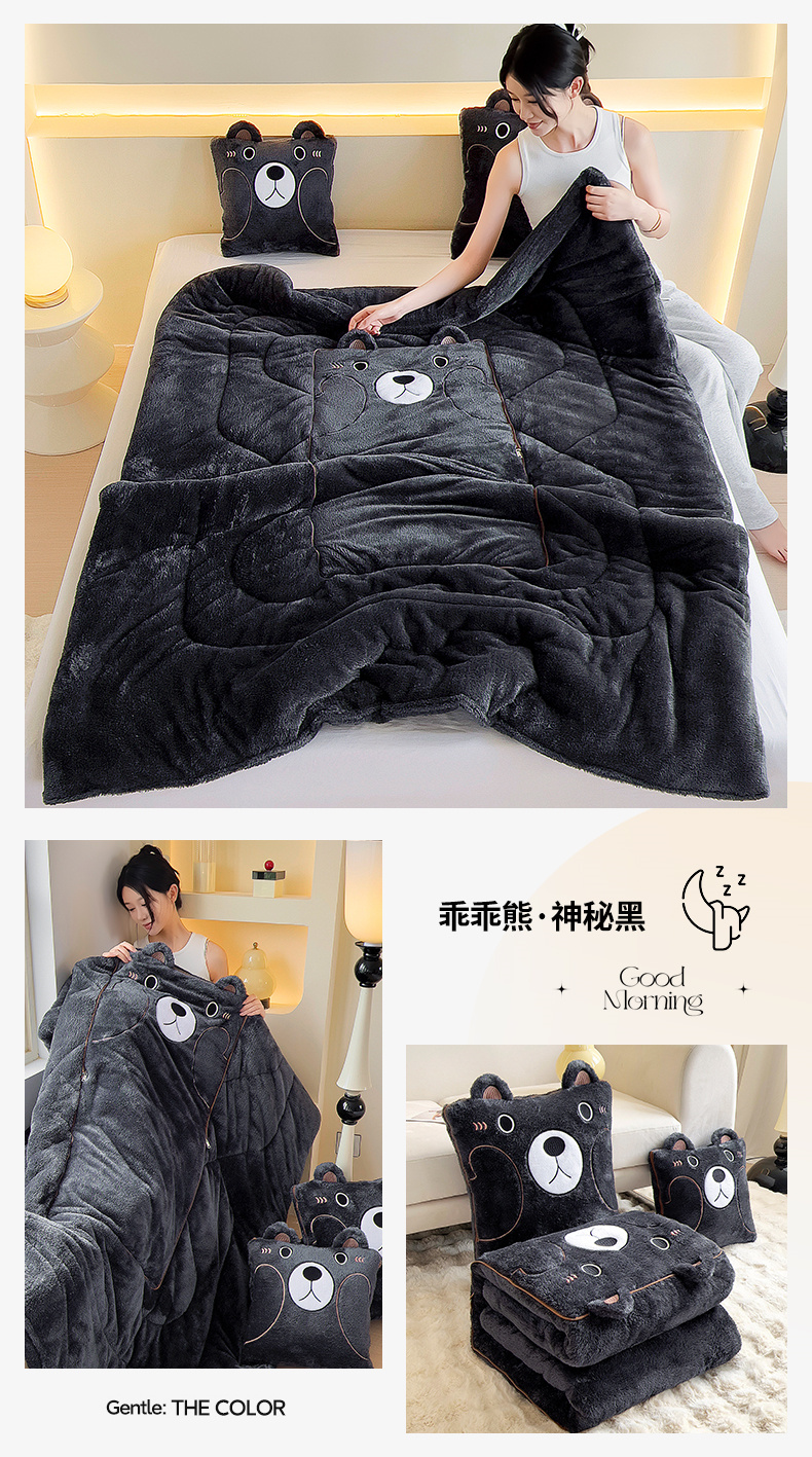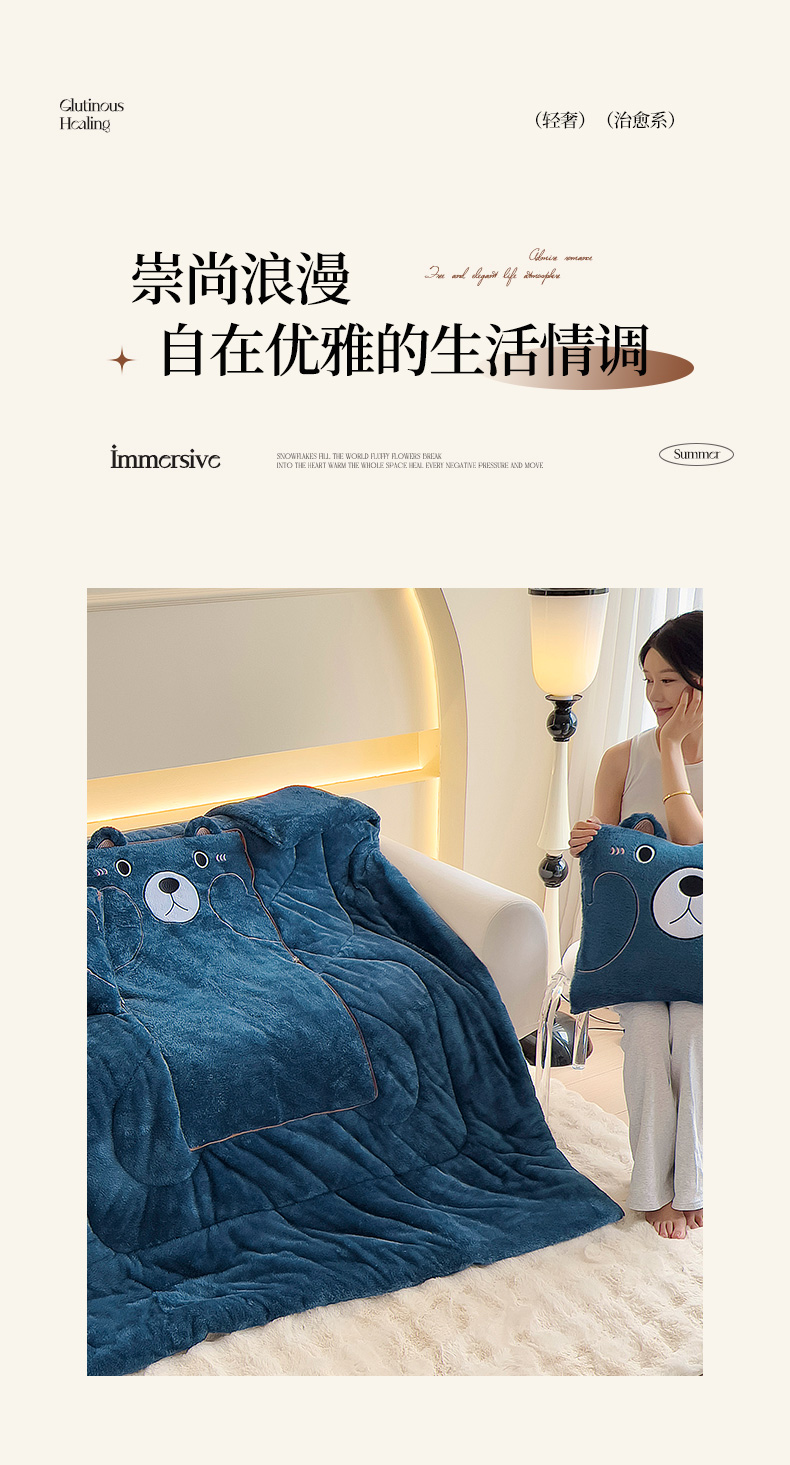 商品名称:阳光依佰抱枕被 2024秋冬新款北极绒乖乖熊多功能抱枕被 乖乖熊-星空蓝