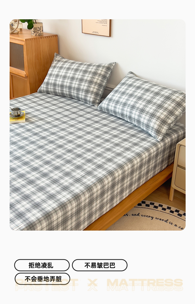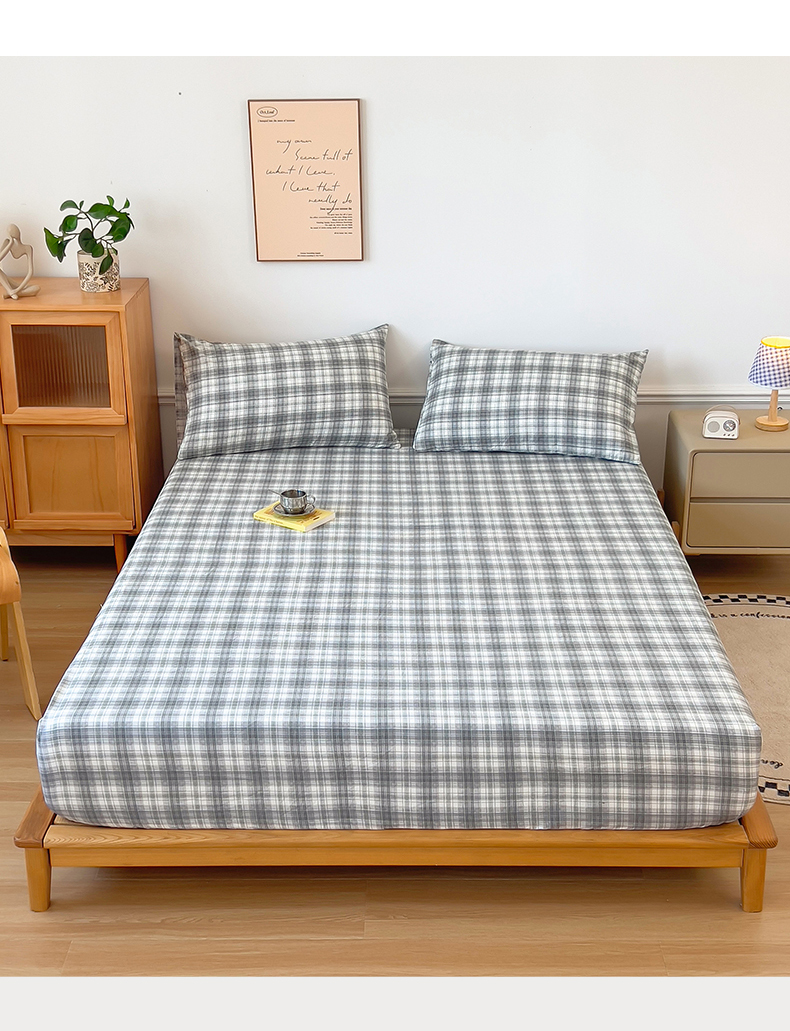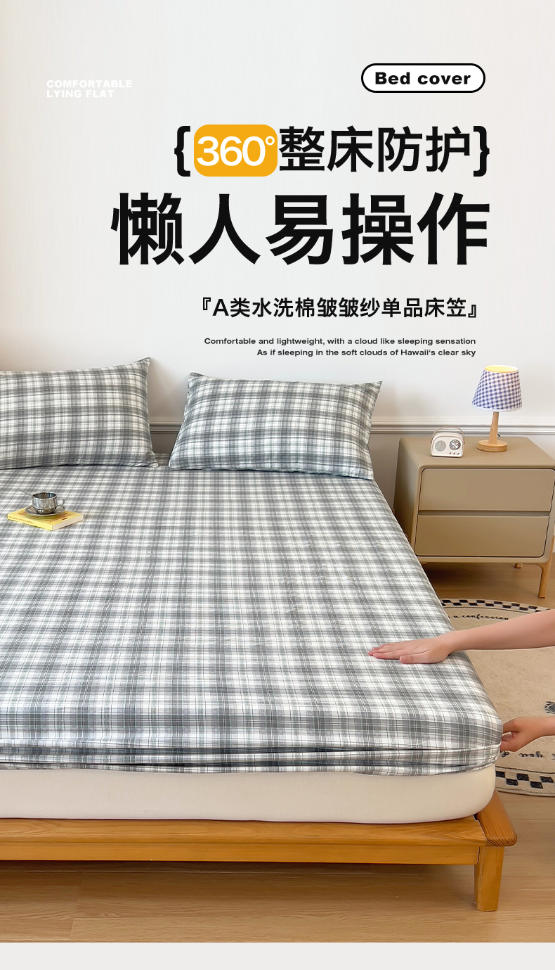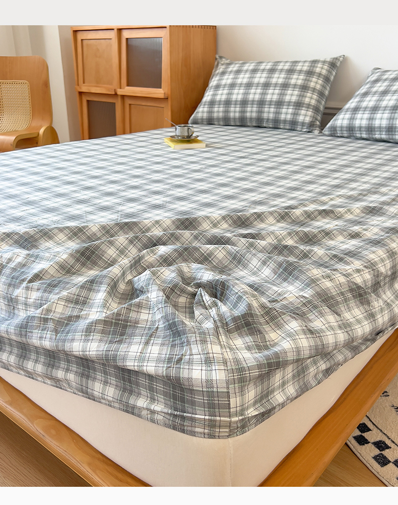 多品 2024新款水洗棉皱皱纱单品床笠 简约格