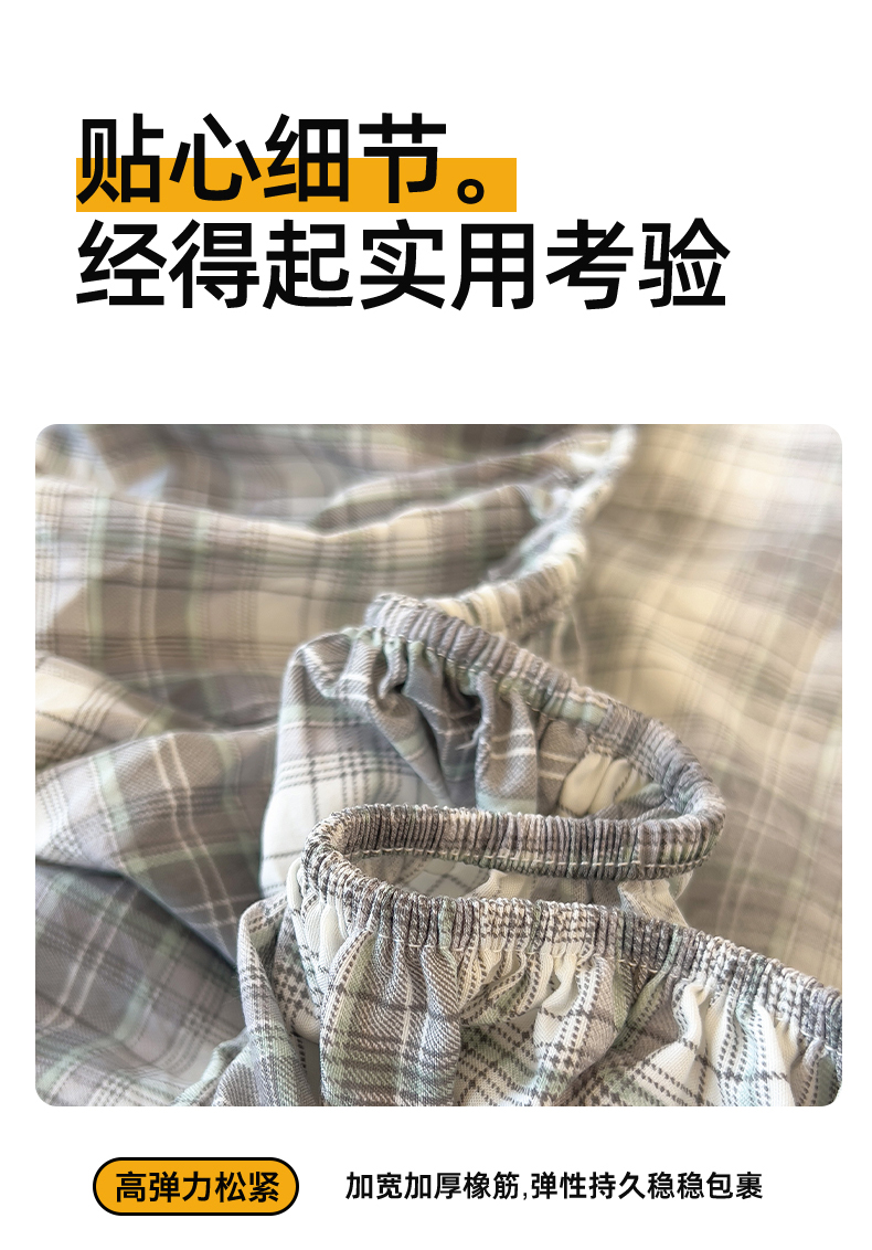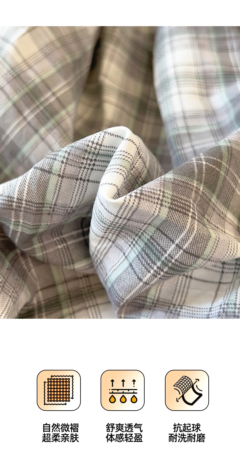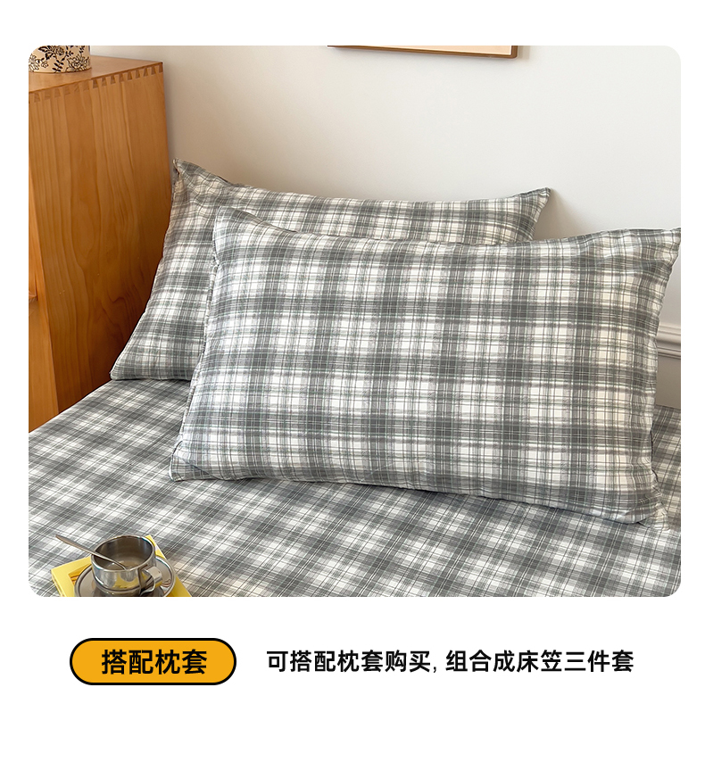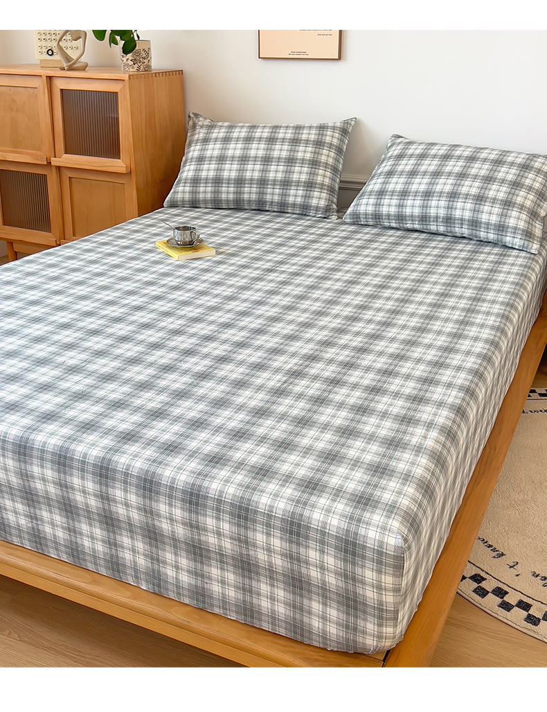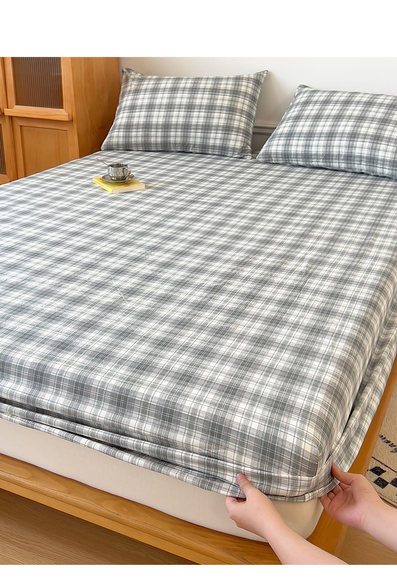 多品 2024新款水洗棉皱皱纱单品床笠 简约格