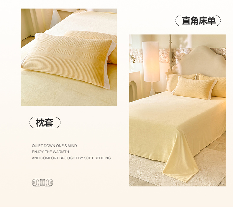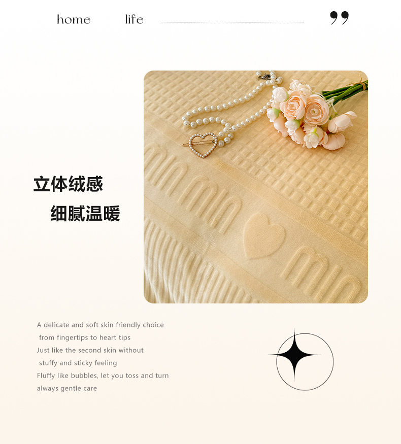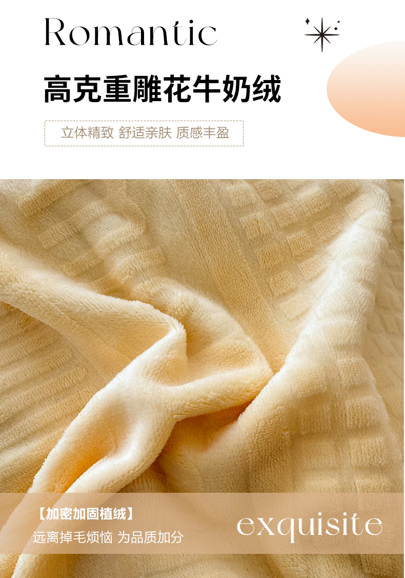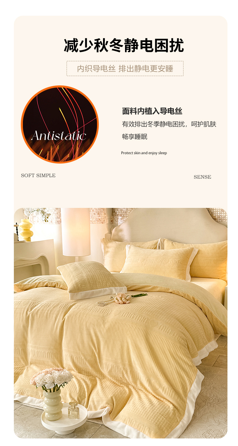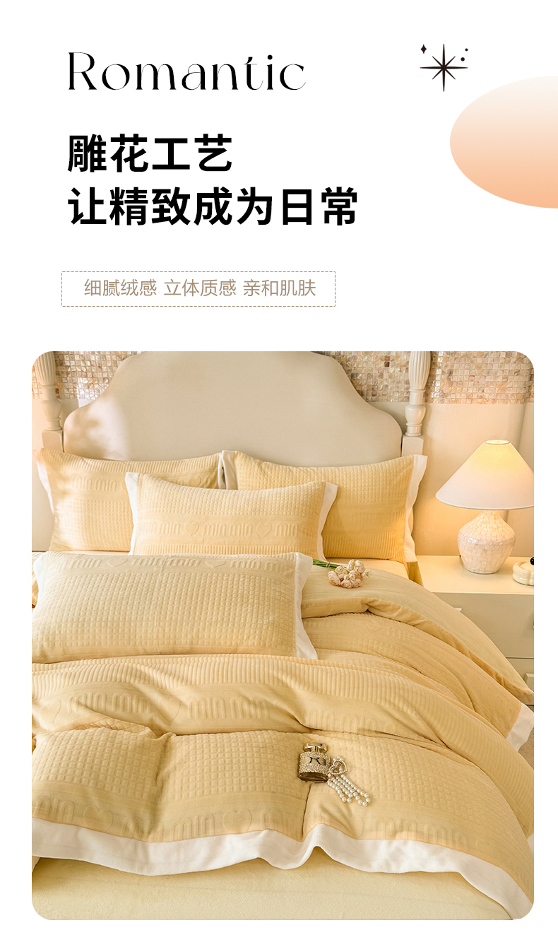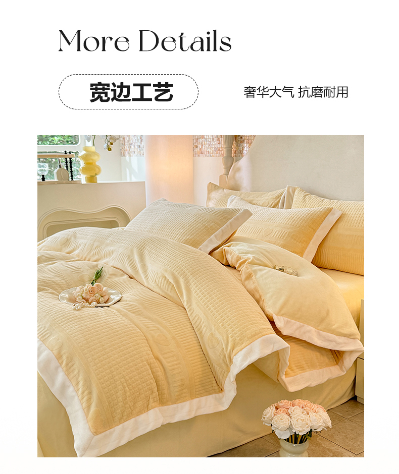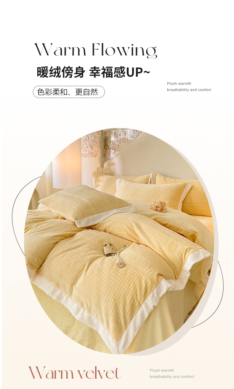 商品名称:捌月 2025新款轻法风宽边雕花牛奶绒四件套提花牛奶绒加厚保暖绒套件直播新品 爱心min-黄