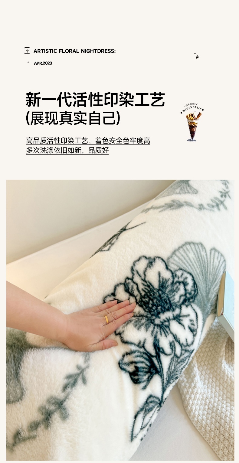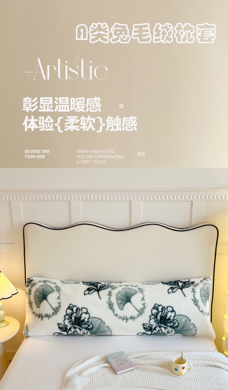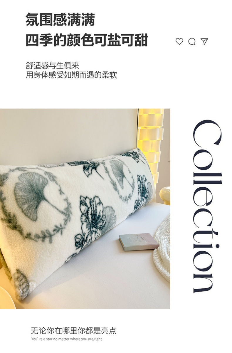 商品名称:梦舒羽 2025新款兔毛绒印花双人枕套牛奶绒加长枕芯套雪花绒枕头套陌上花开